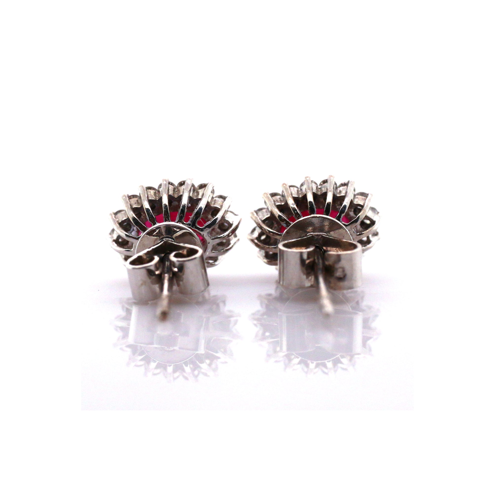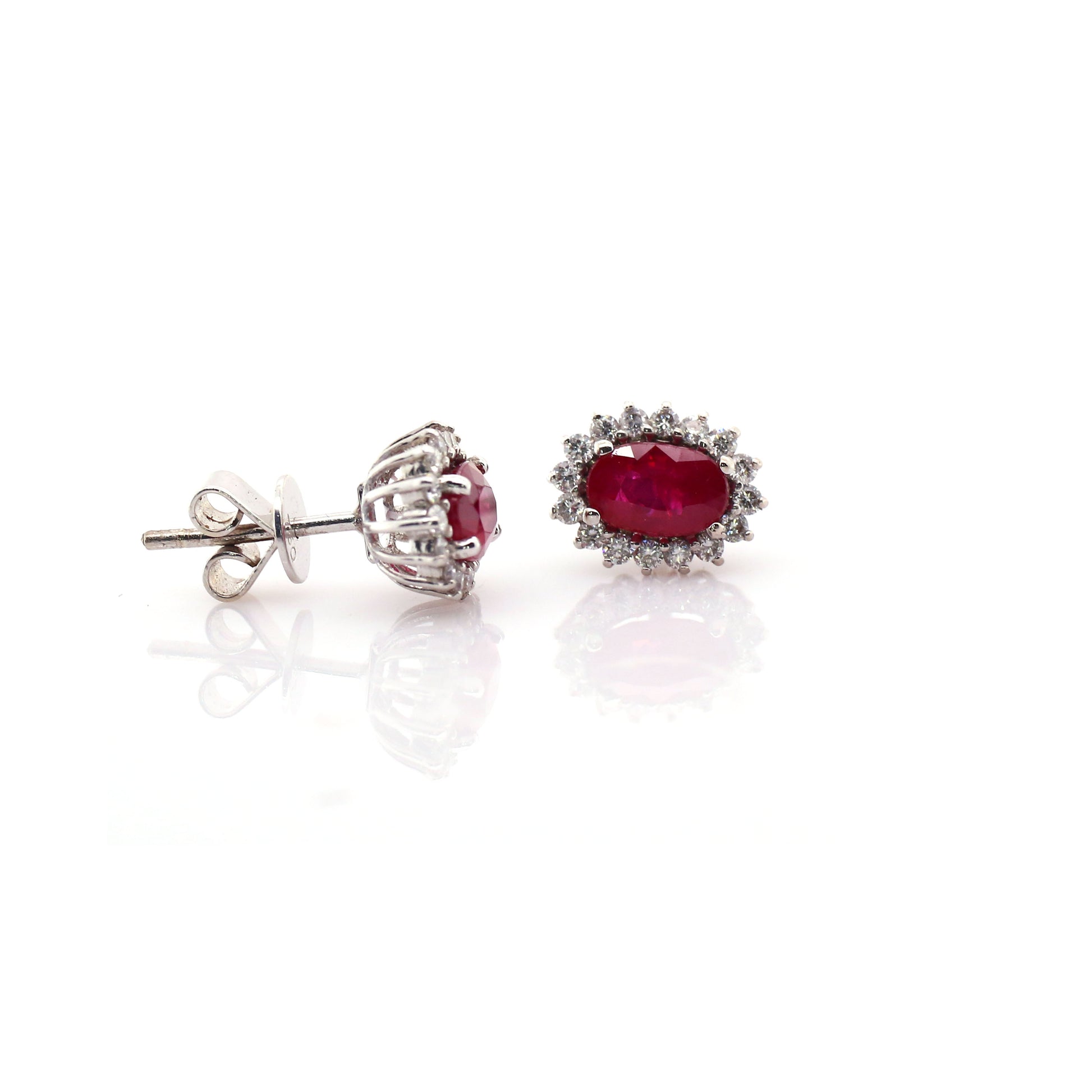 Beautiful and Almost Flawless Ruby has been Elegantly set with Natural Diamonds to create this 18kt White Gold Earring.