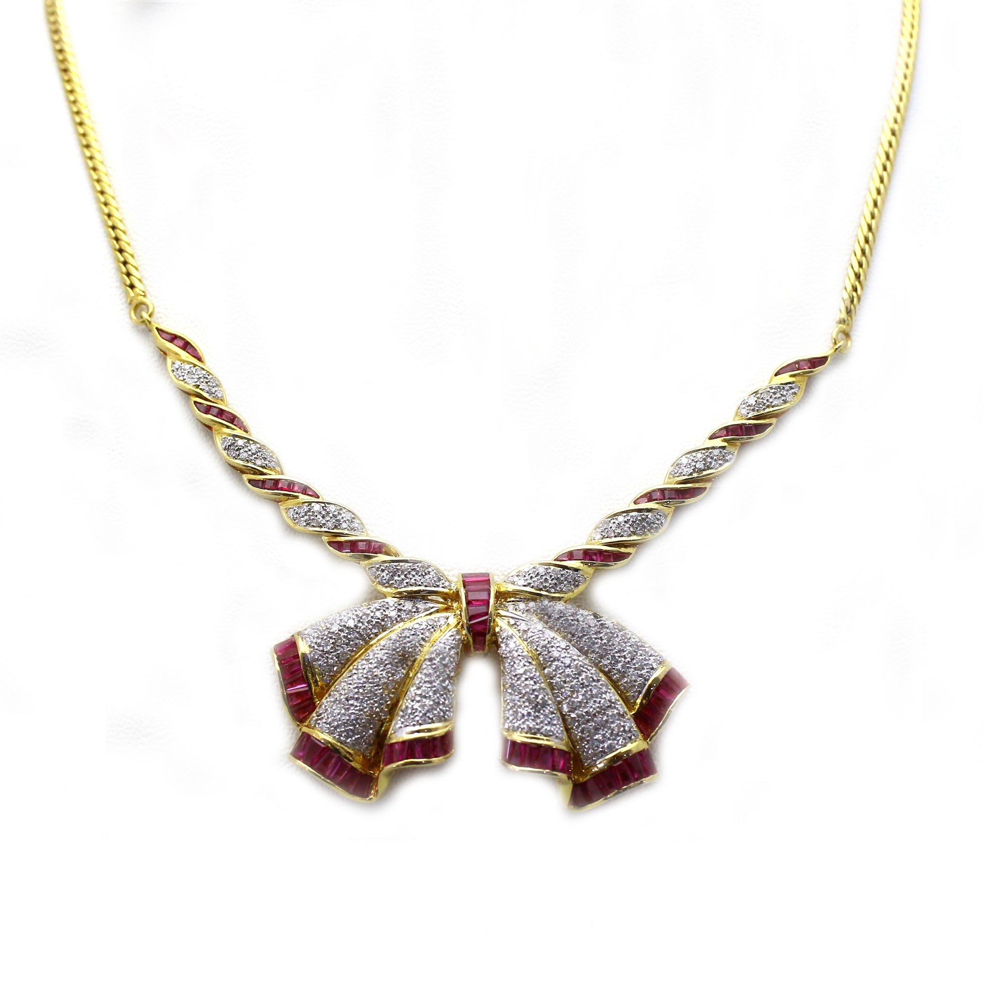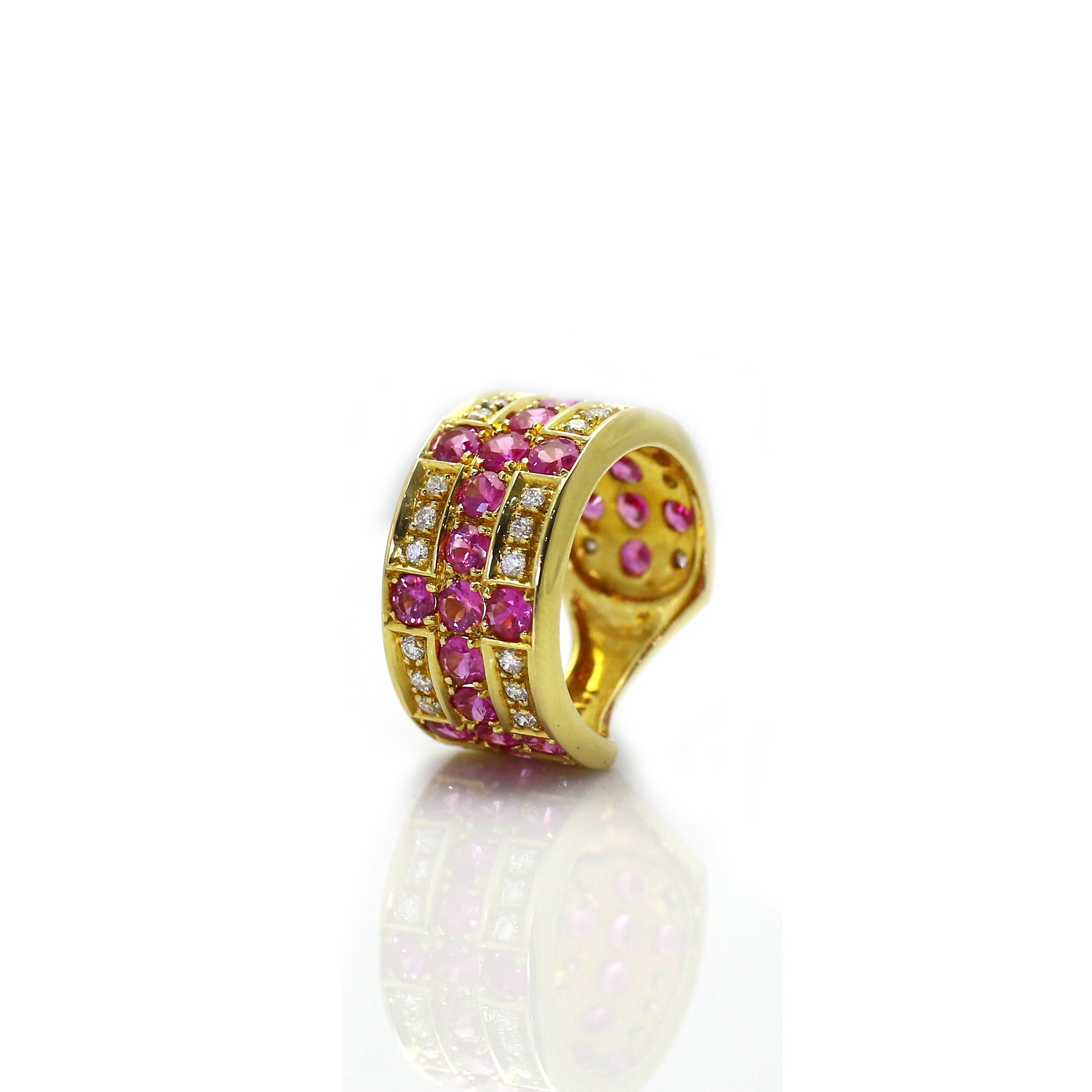 Beautiful and Almost Flawless Pinkish Red Ruby and Pink Sapphire has been Elegantly set with Natural Diamonds to create this 18kt Yellow Gold Jewellery Sets.