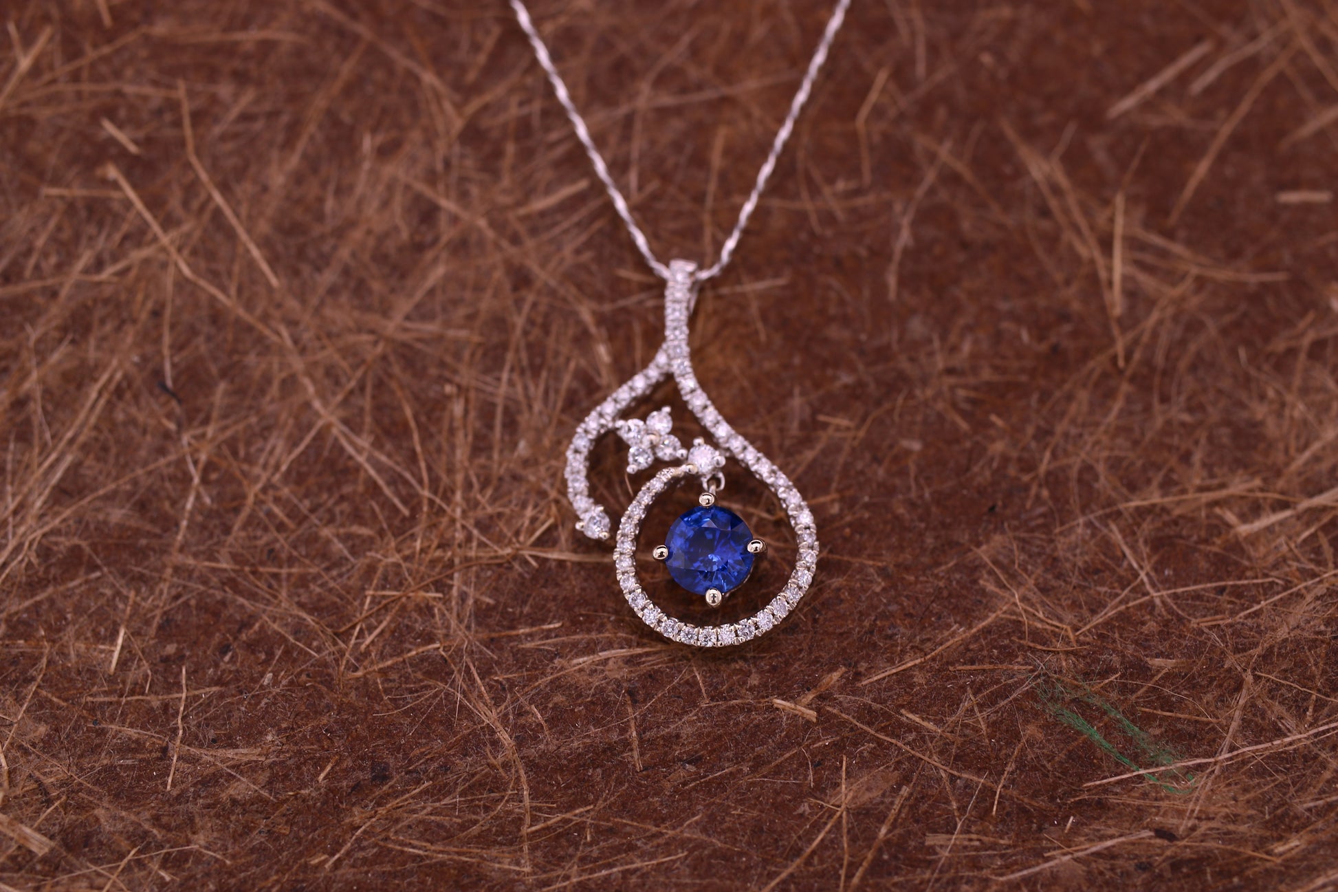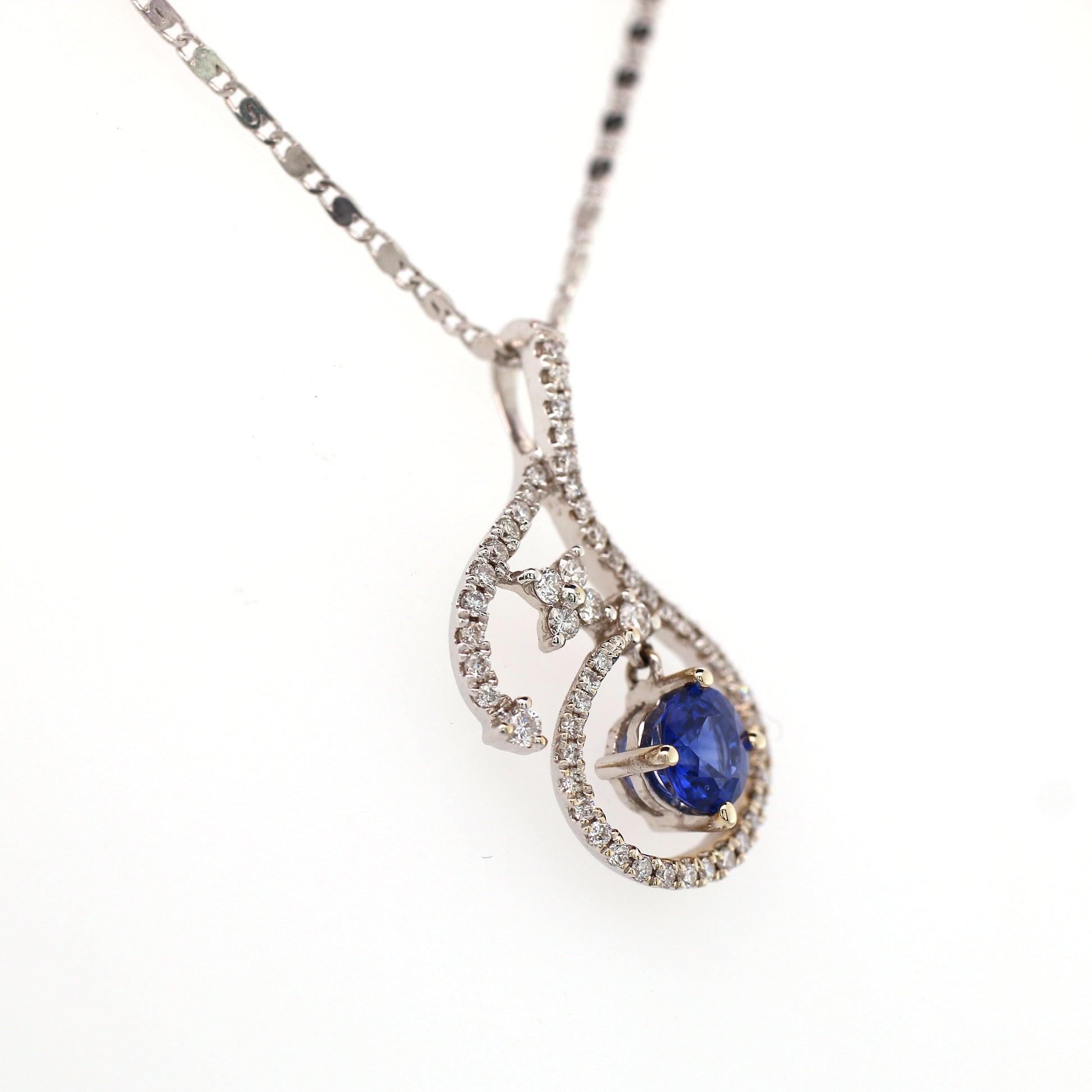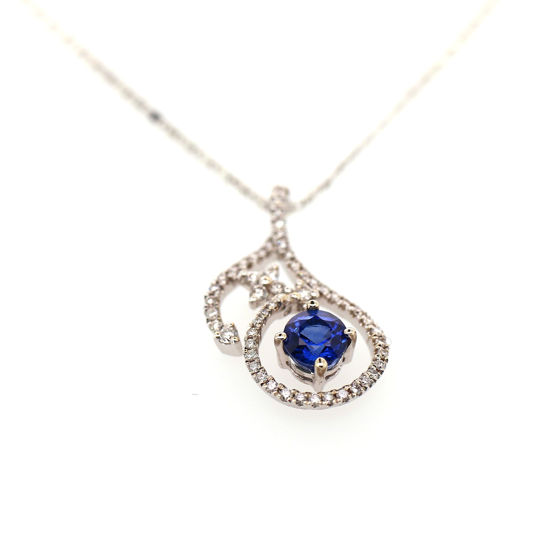 Vivid Blue Sapphire has been Elegantly set with Natural Diamonds to create this 18kt White Gold Pendant.