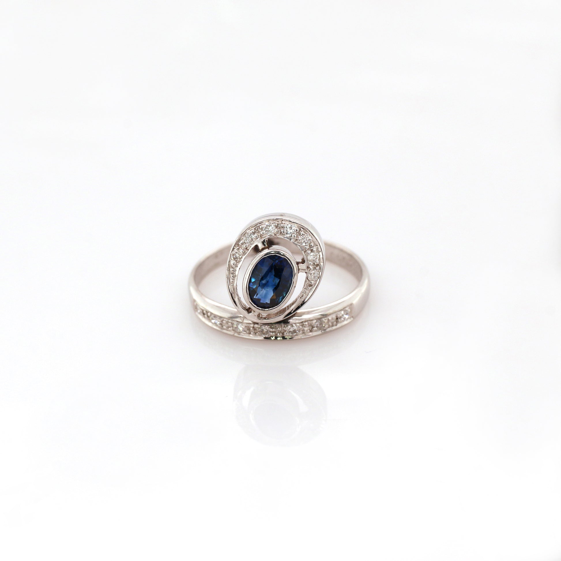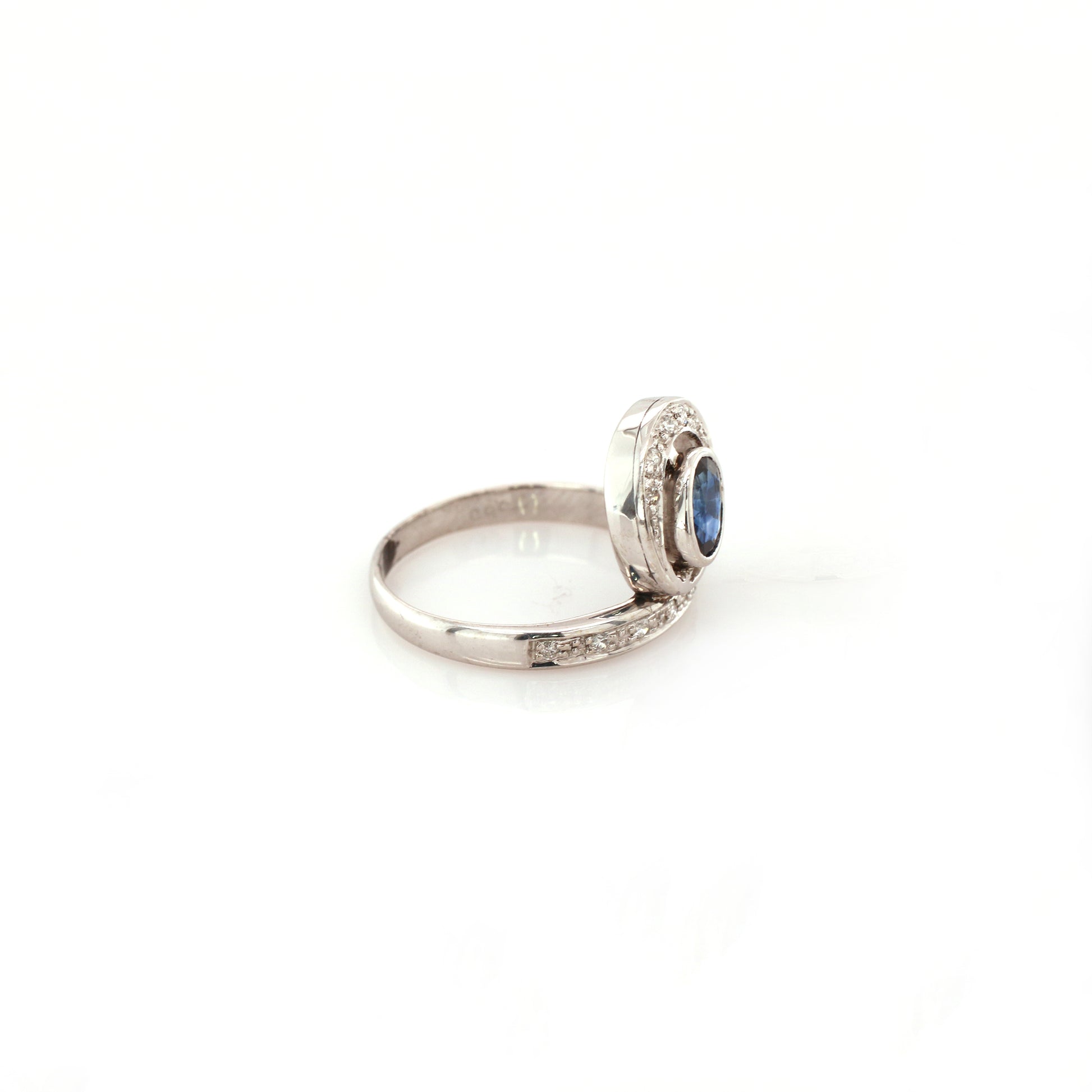 Blue Sapphire & White Ring - 14K White Gold 3.10gm