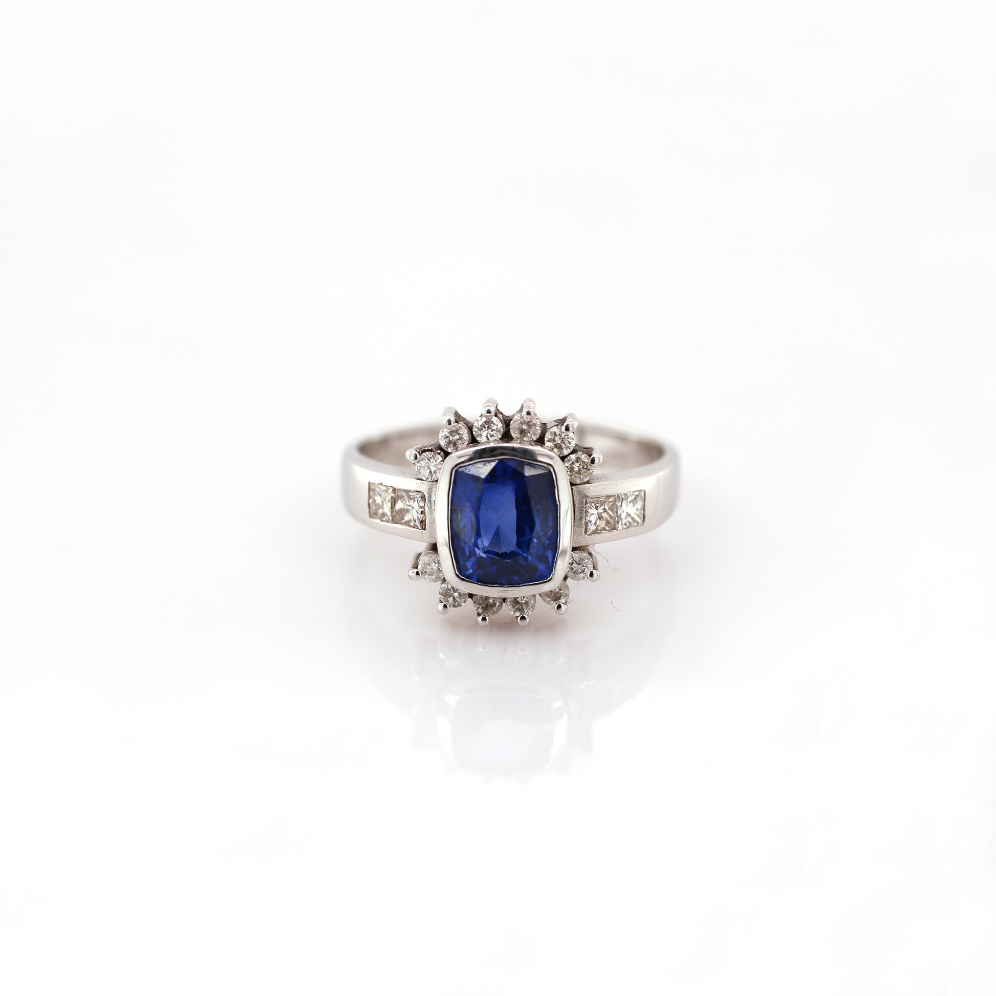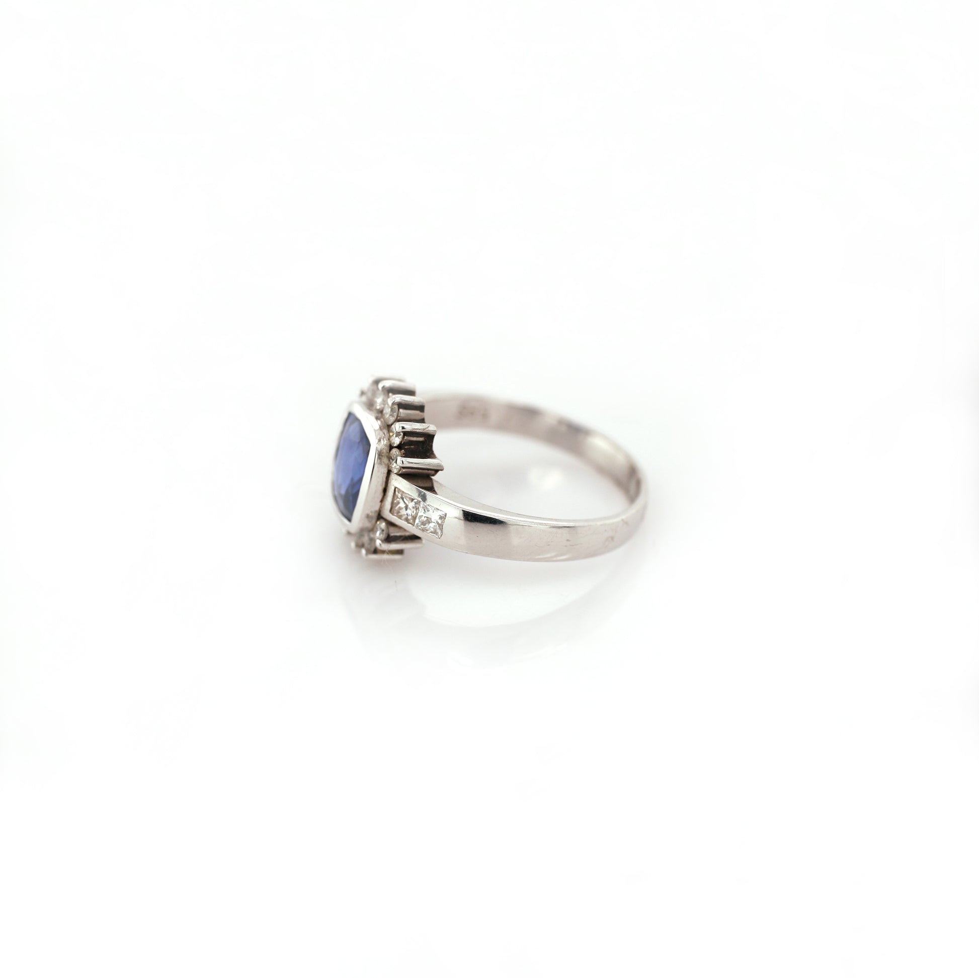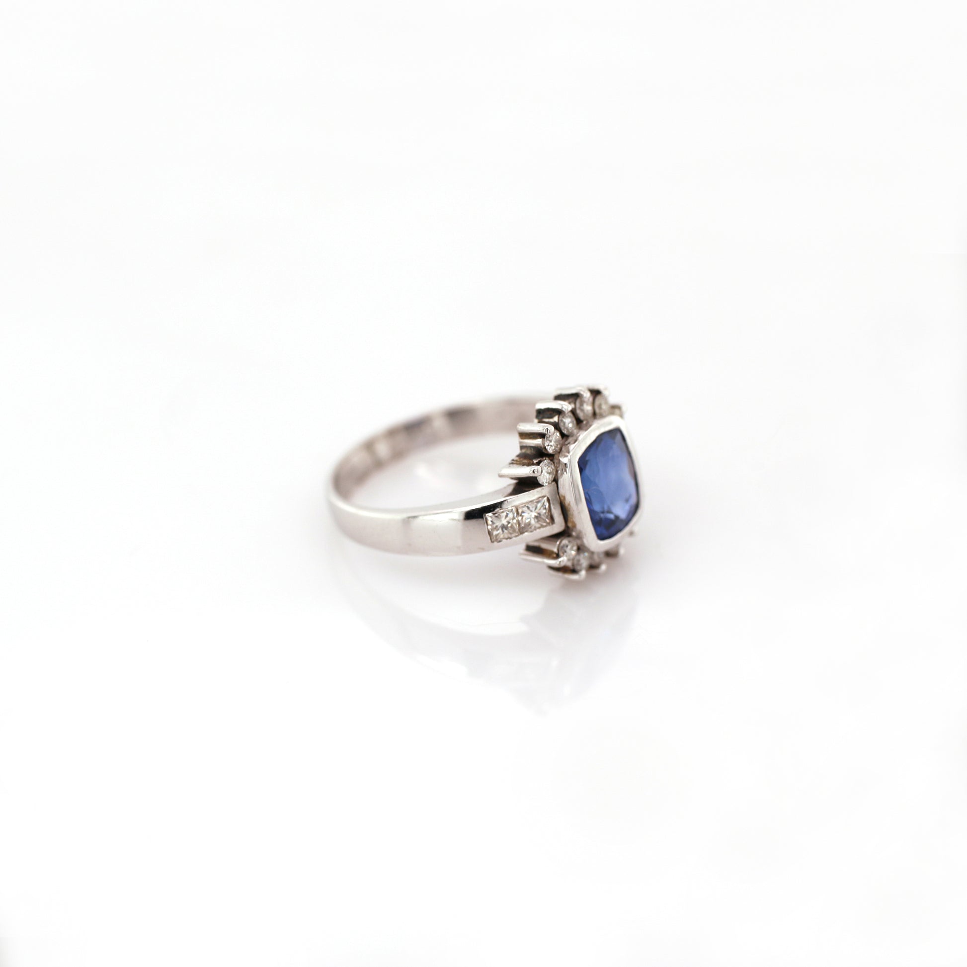 Blue Sapphire & Diamond Ring - 14K White Gold 3.90gm