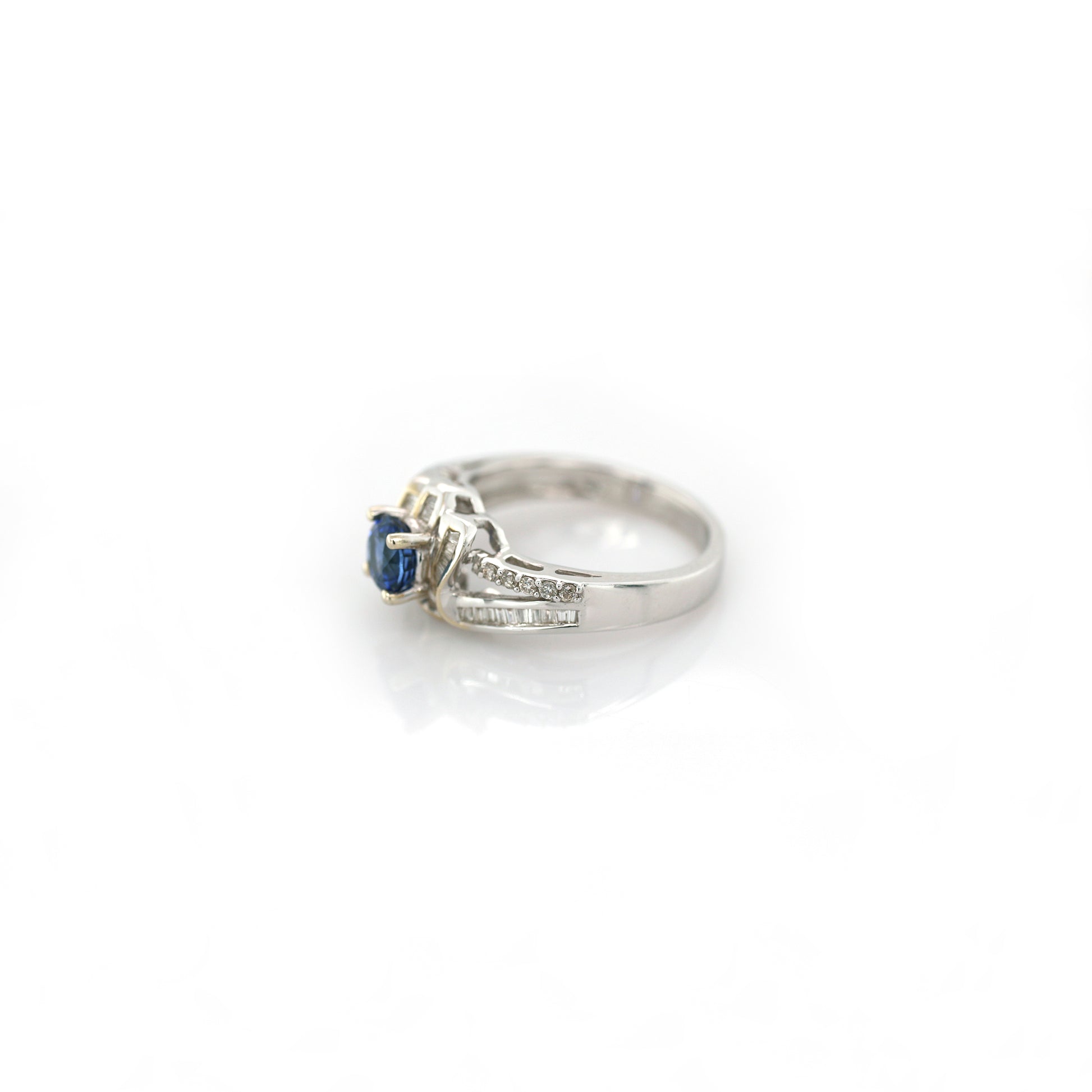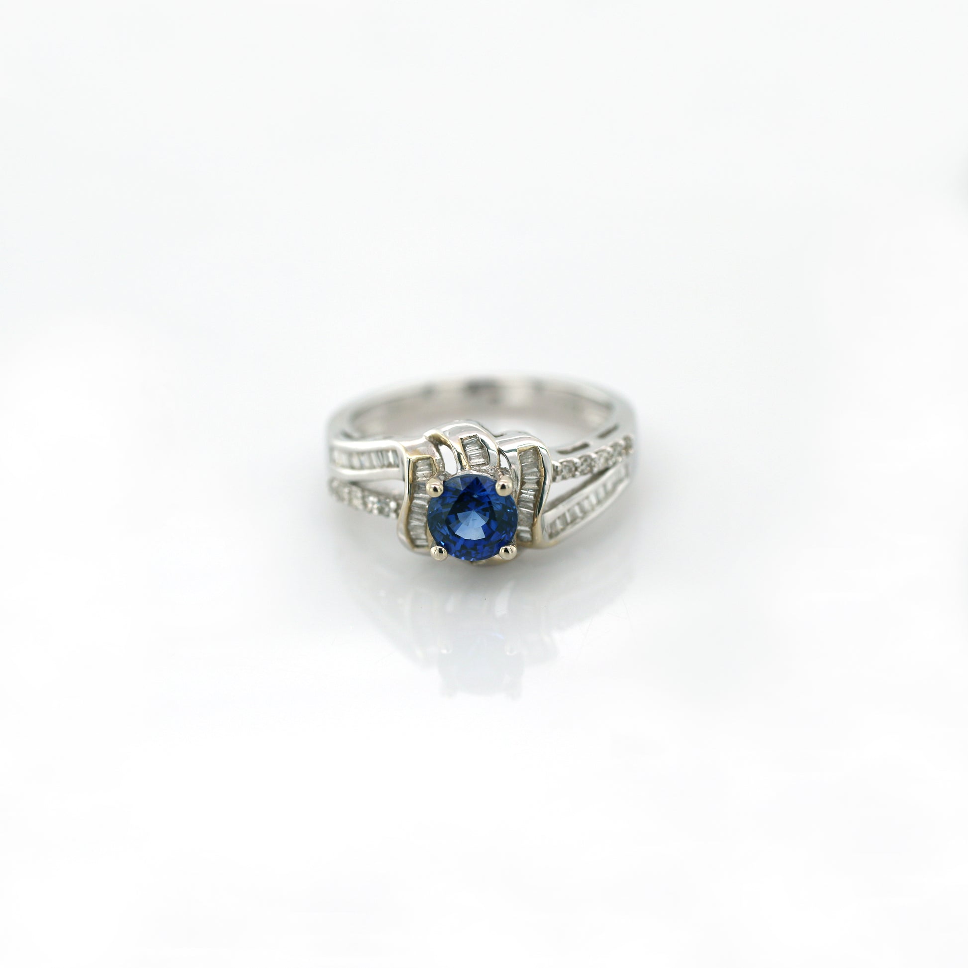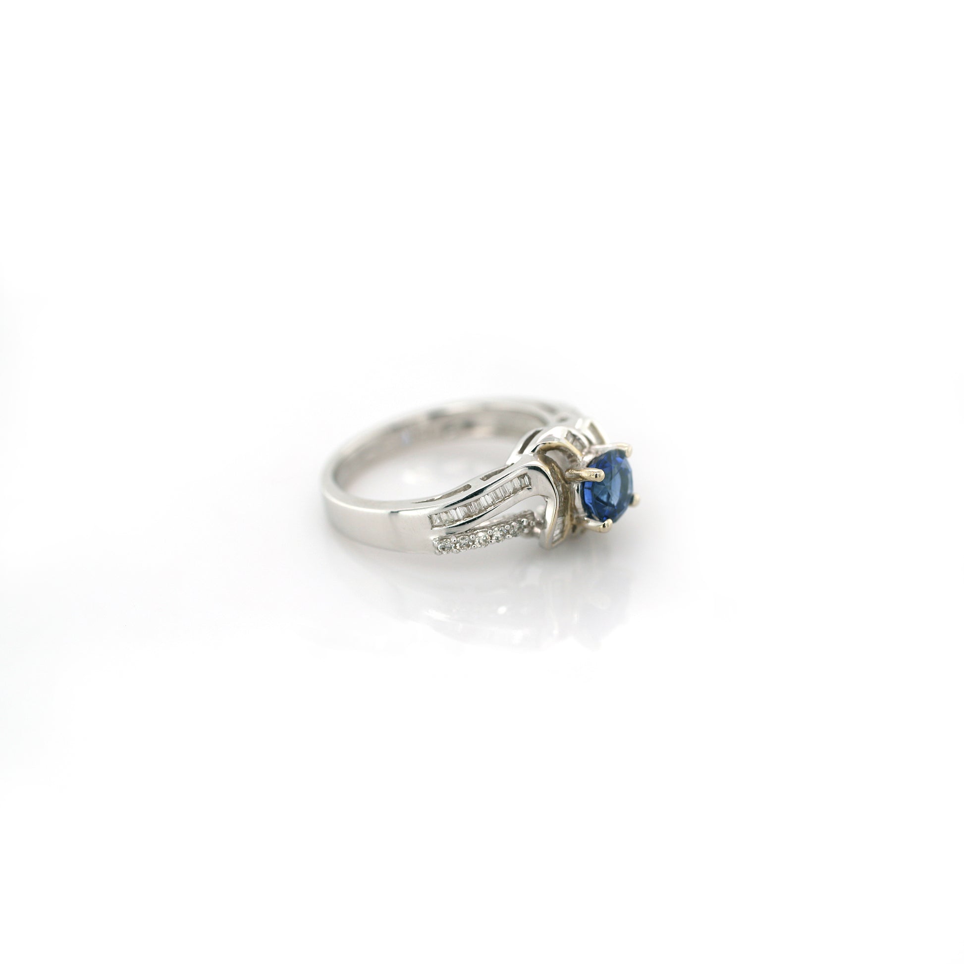Blue Sapphire & Diamond Ring - 18K White Gold 4.10g