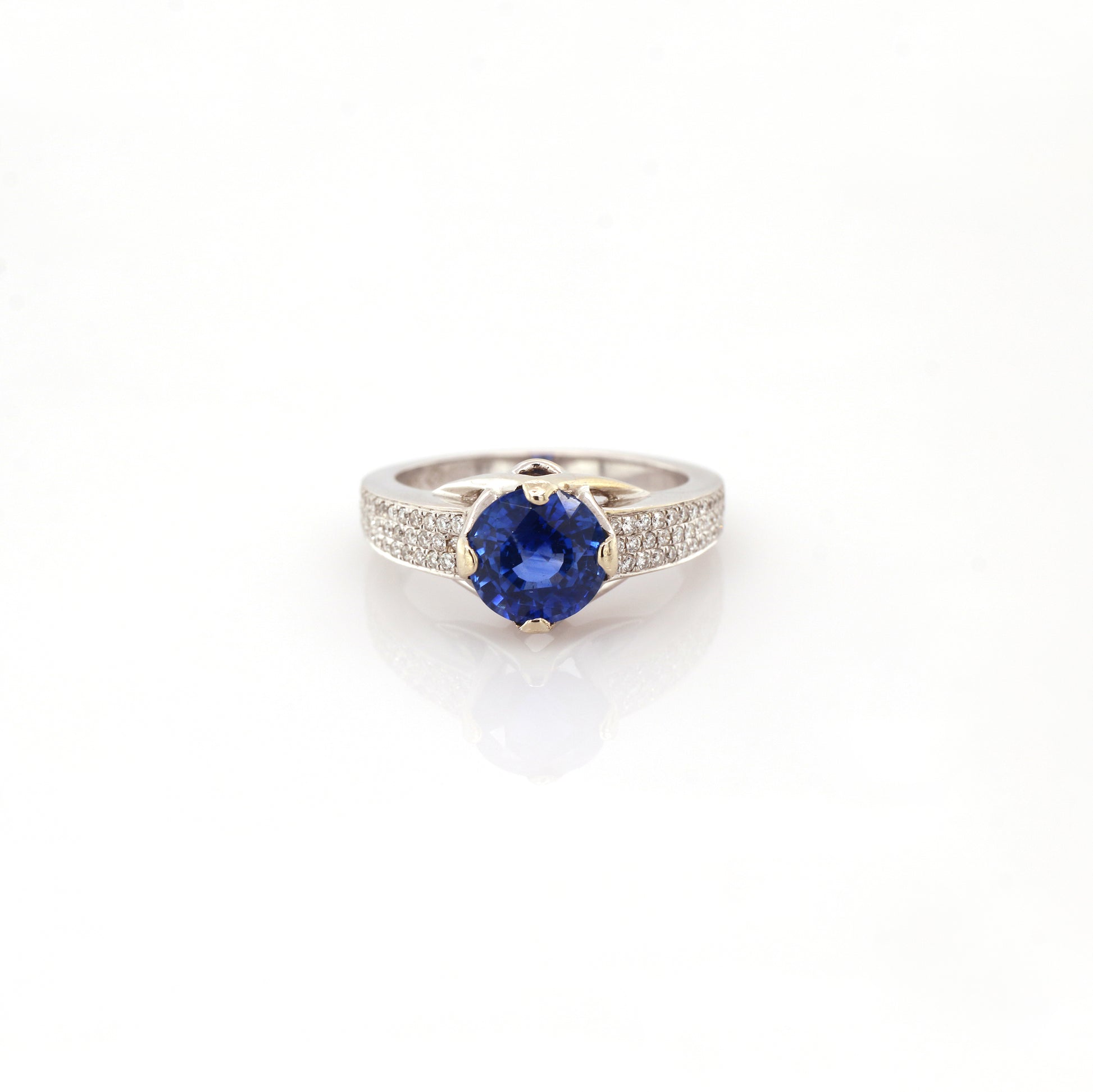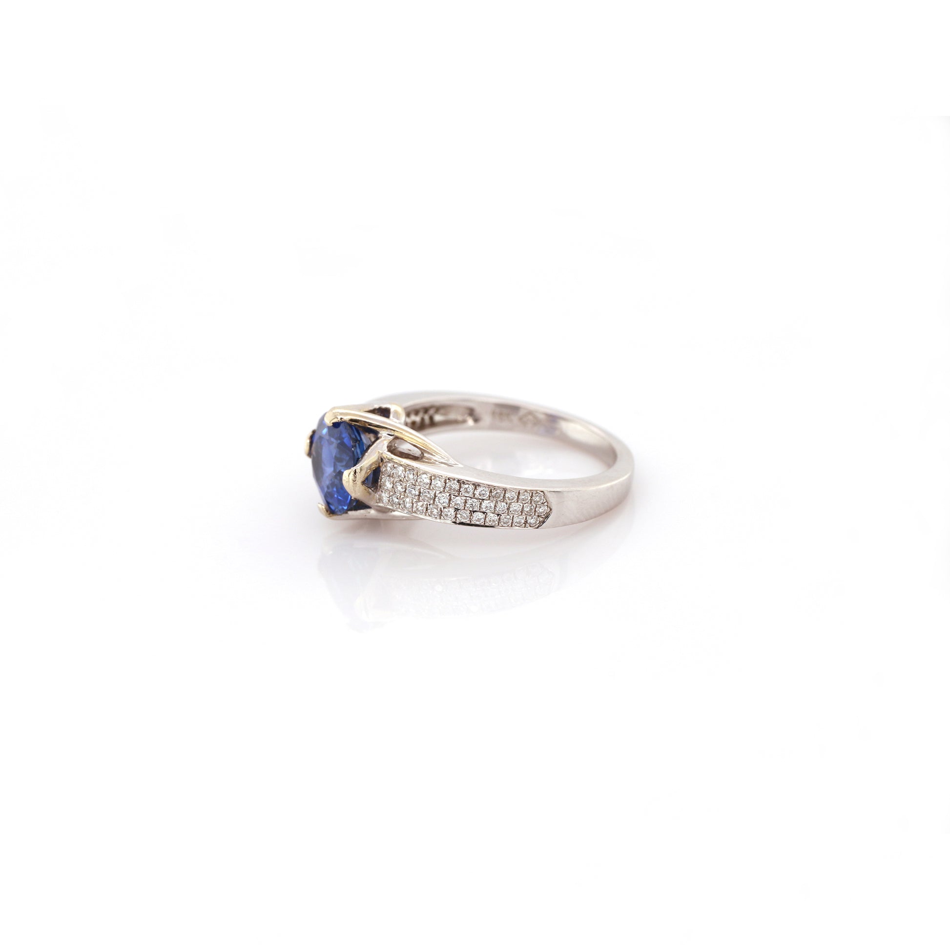 Blue Sapphire & Diamond Ring - 18K White Gold 5.28gm