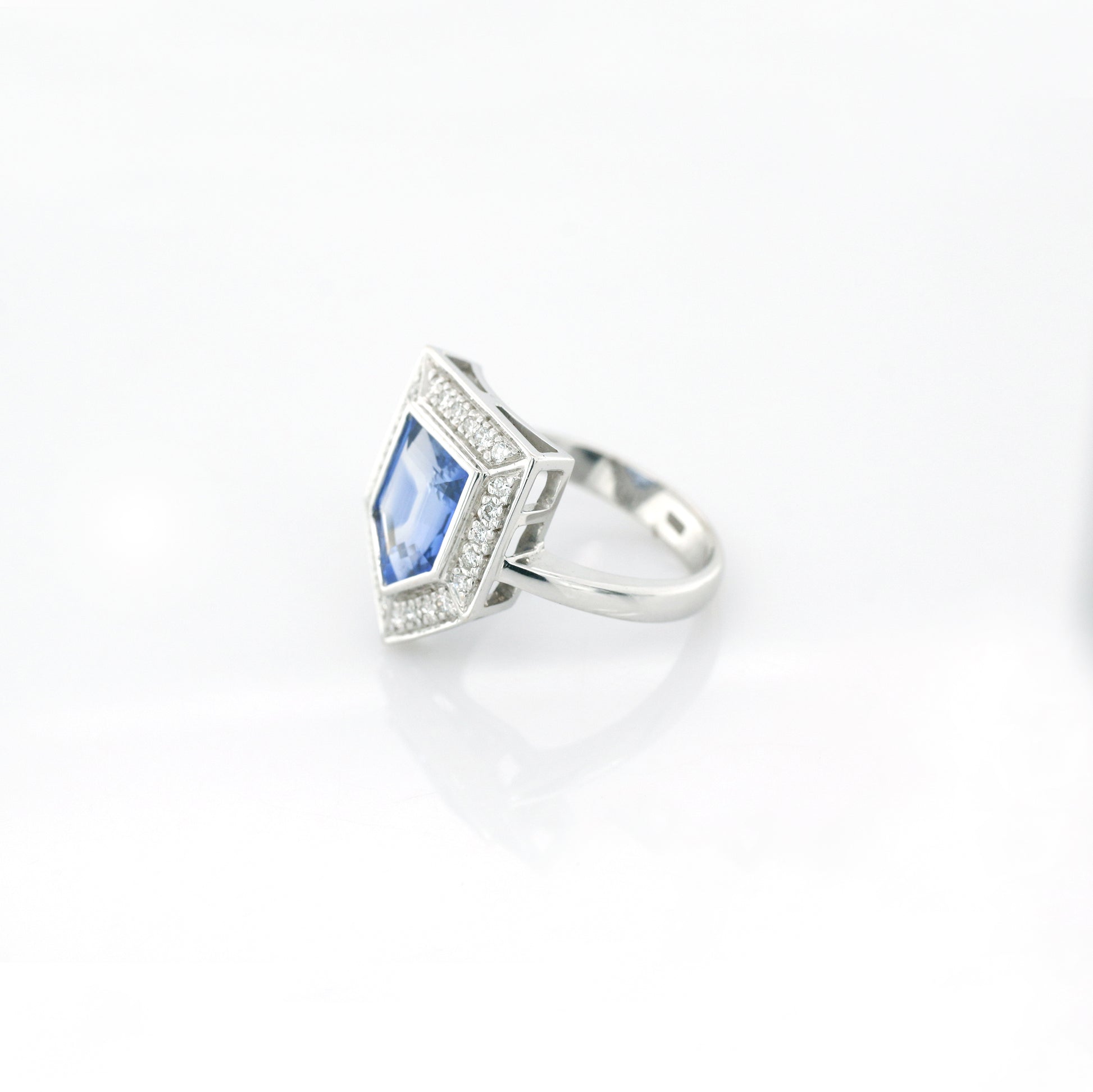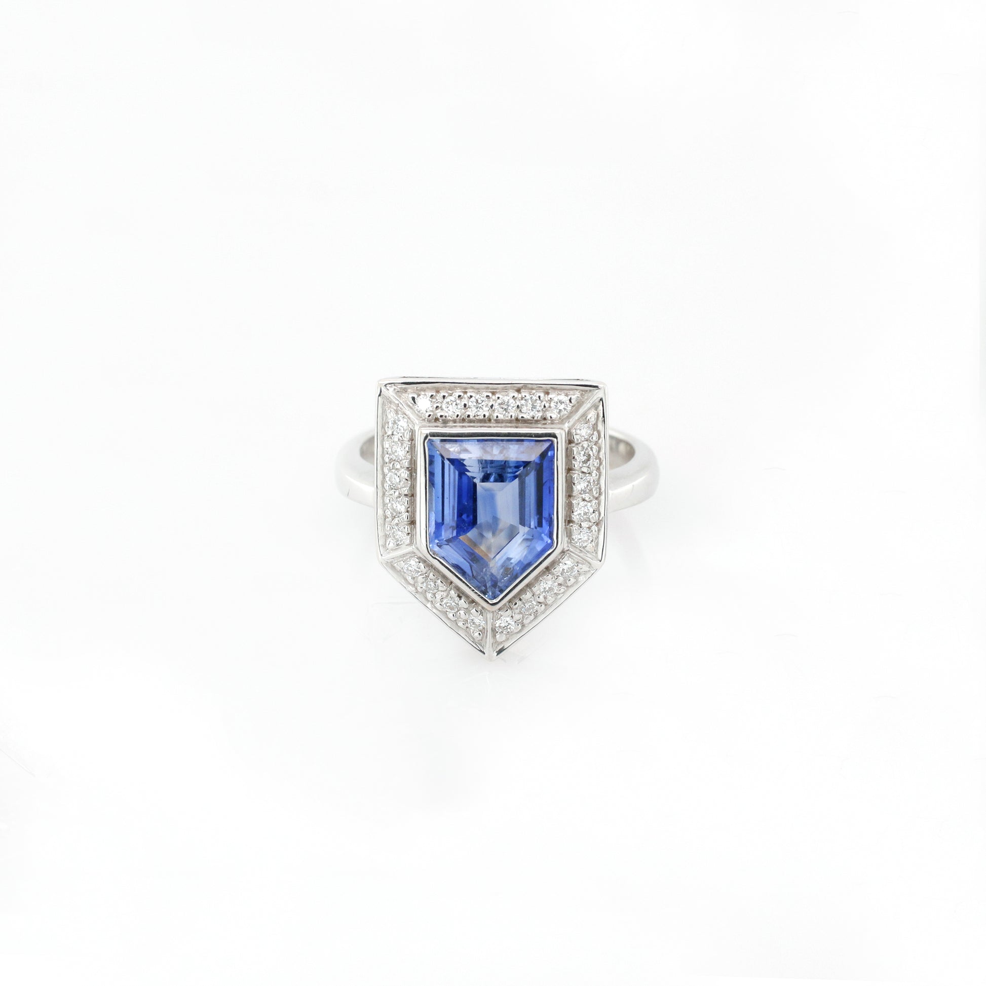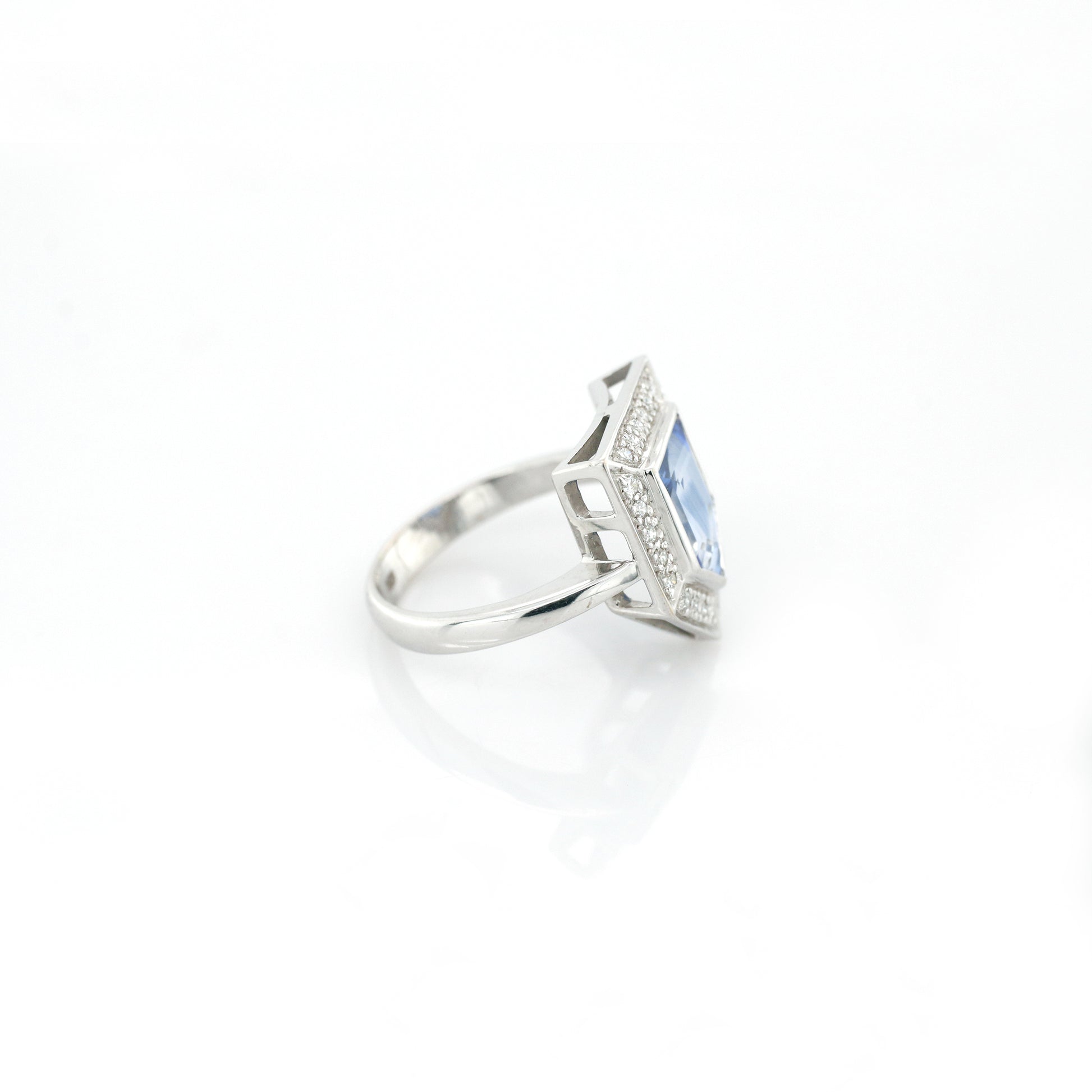 Blue Sapphire & Diamond Ring - 18K White Gold 5.30g