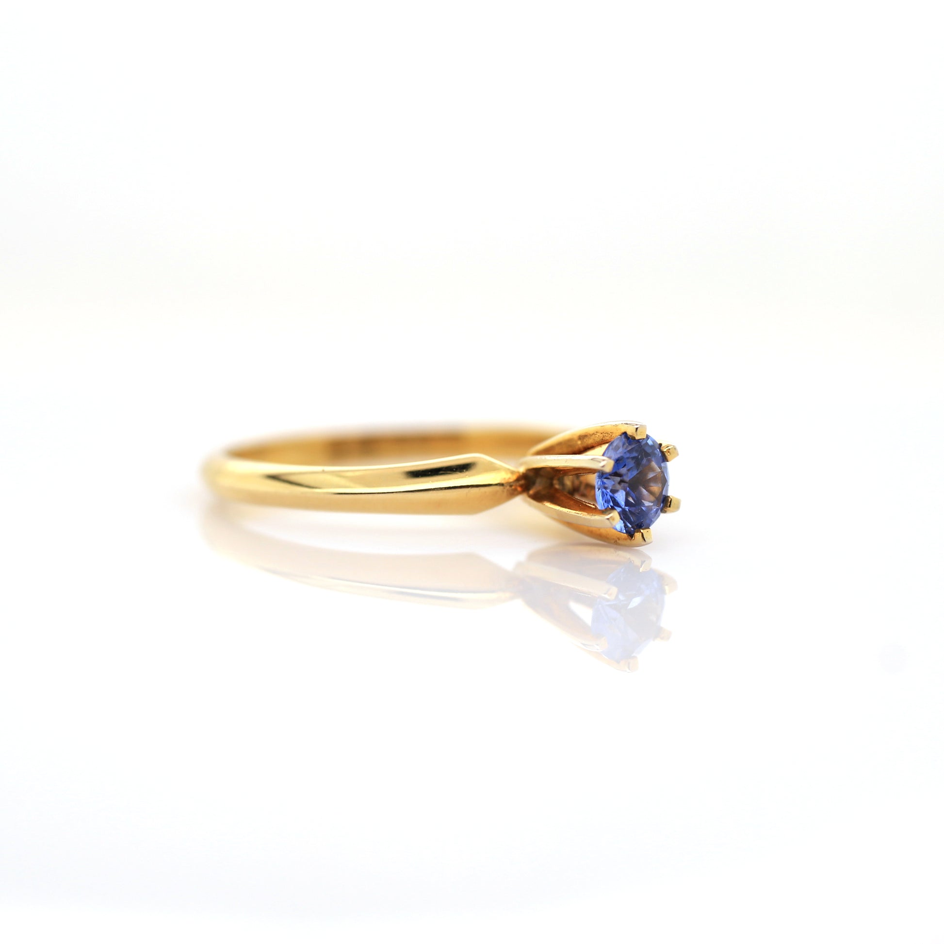 Blue Sapphire Engagement Ring - 18k Yellow Gold 1.81g