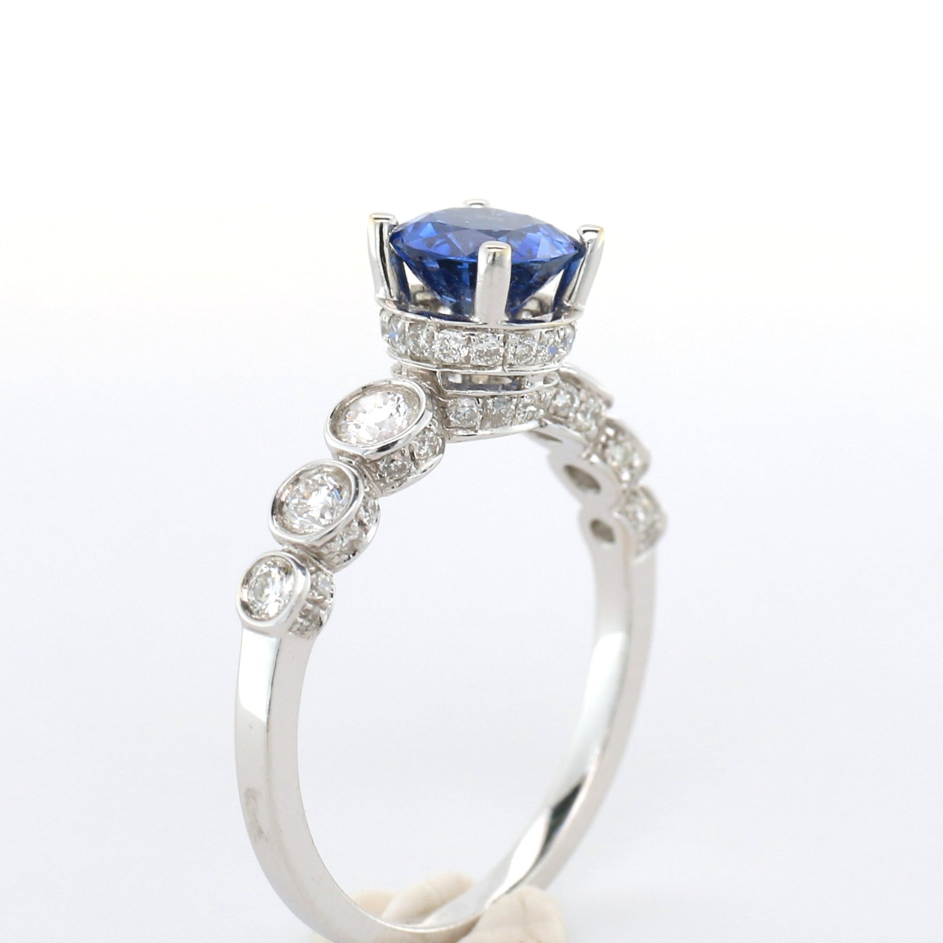 Blue Sapphire & Diamond Ring - 18K White Gold 2.55g