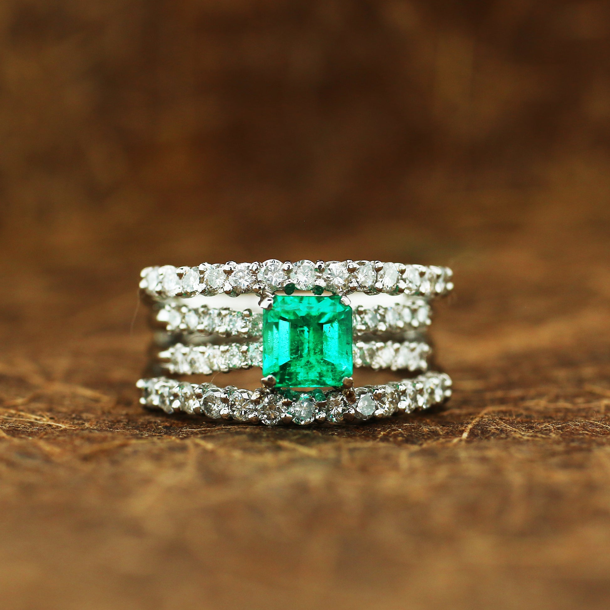 Emerald & Diamond Ring Platinum 8.70g
