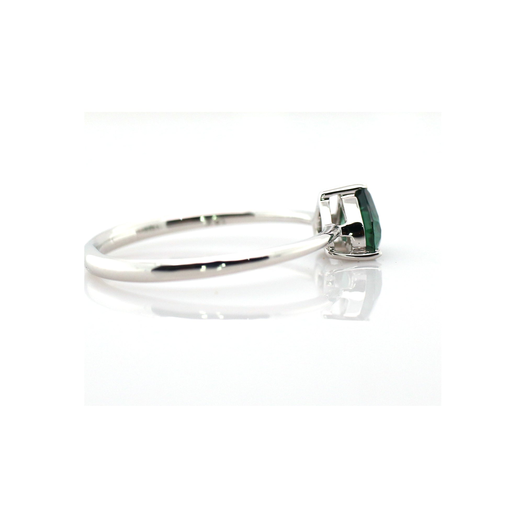 Natural Teal Sapphire & Diamond Ring 18k White Gold 1.35 gm