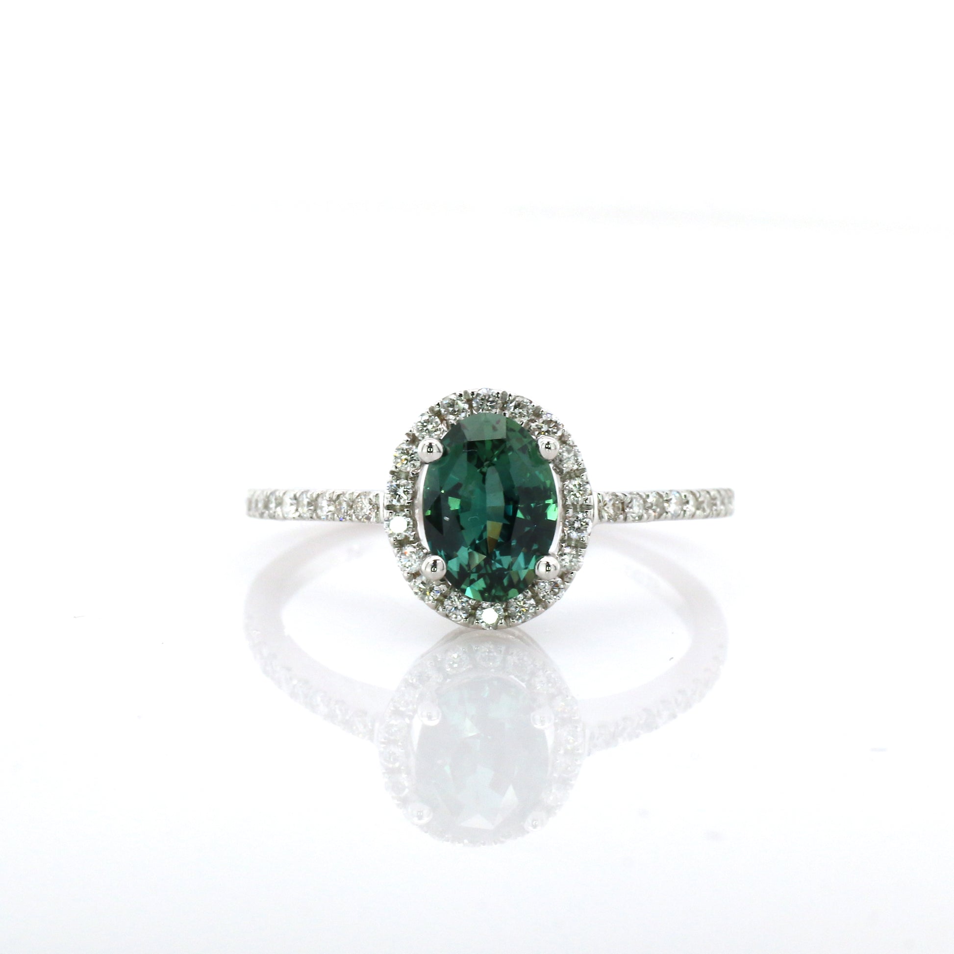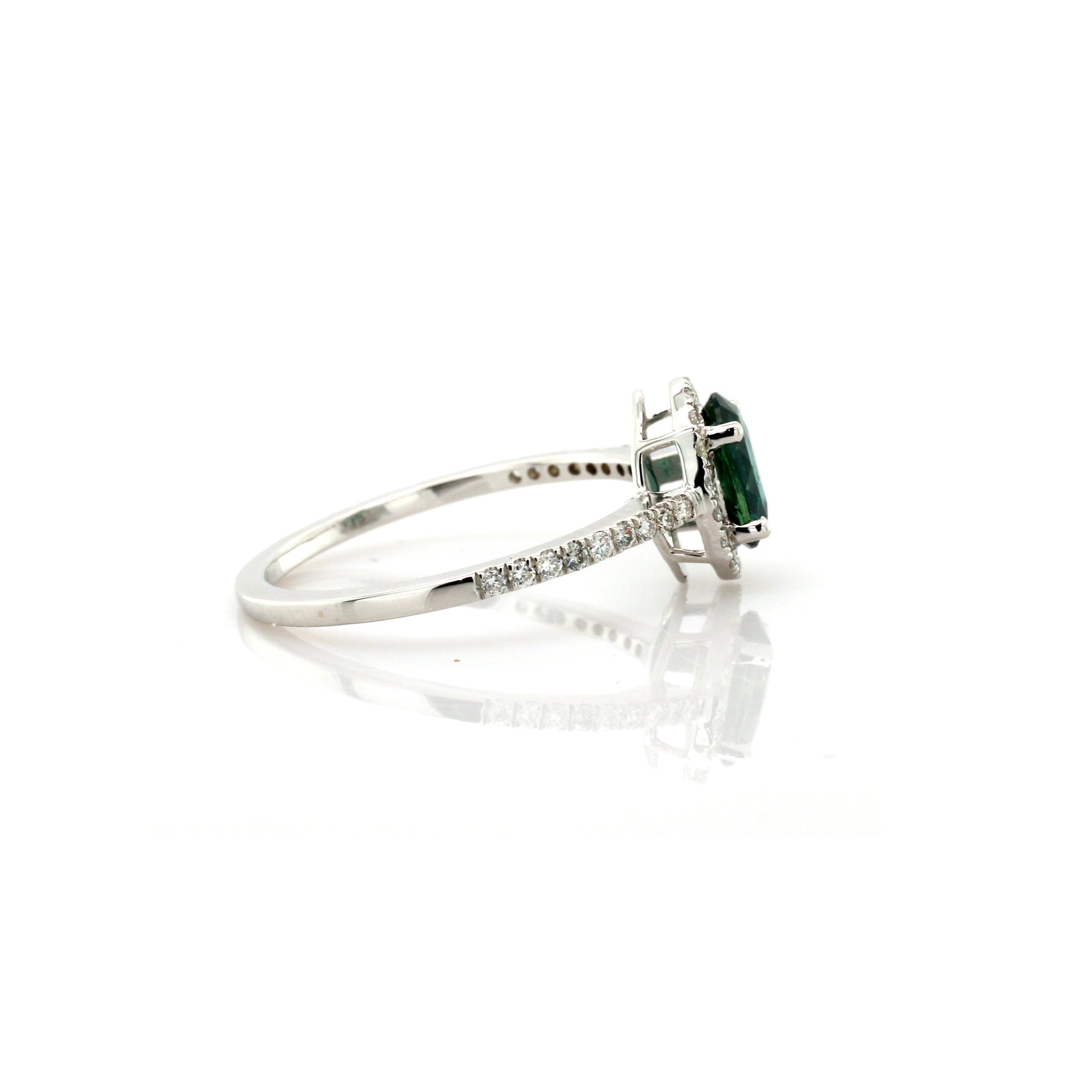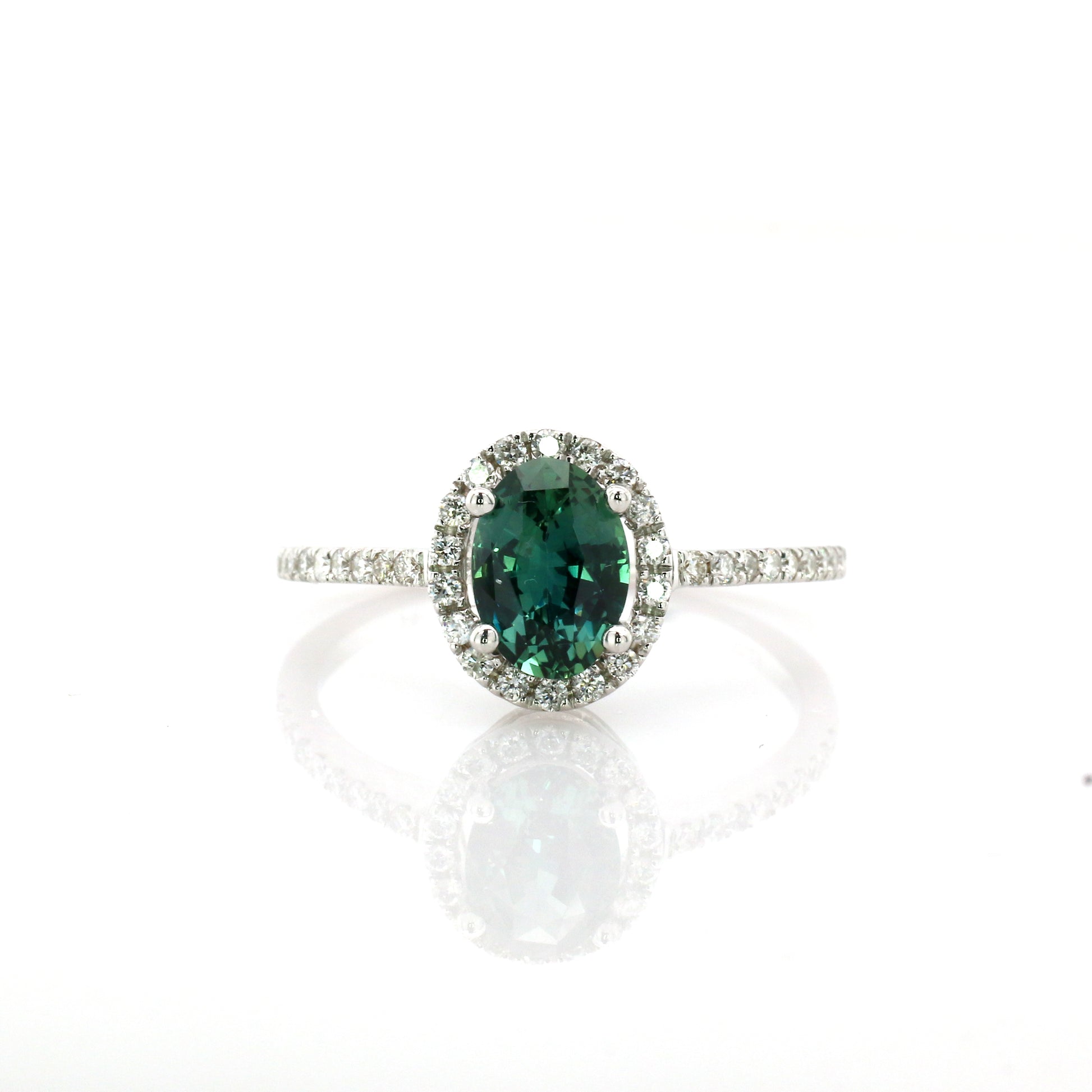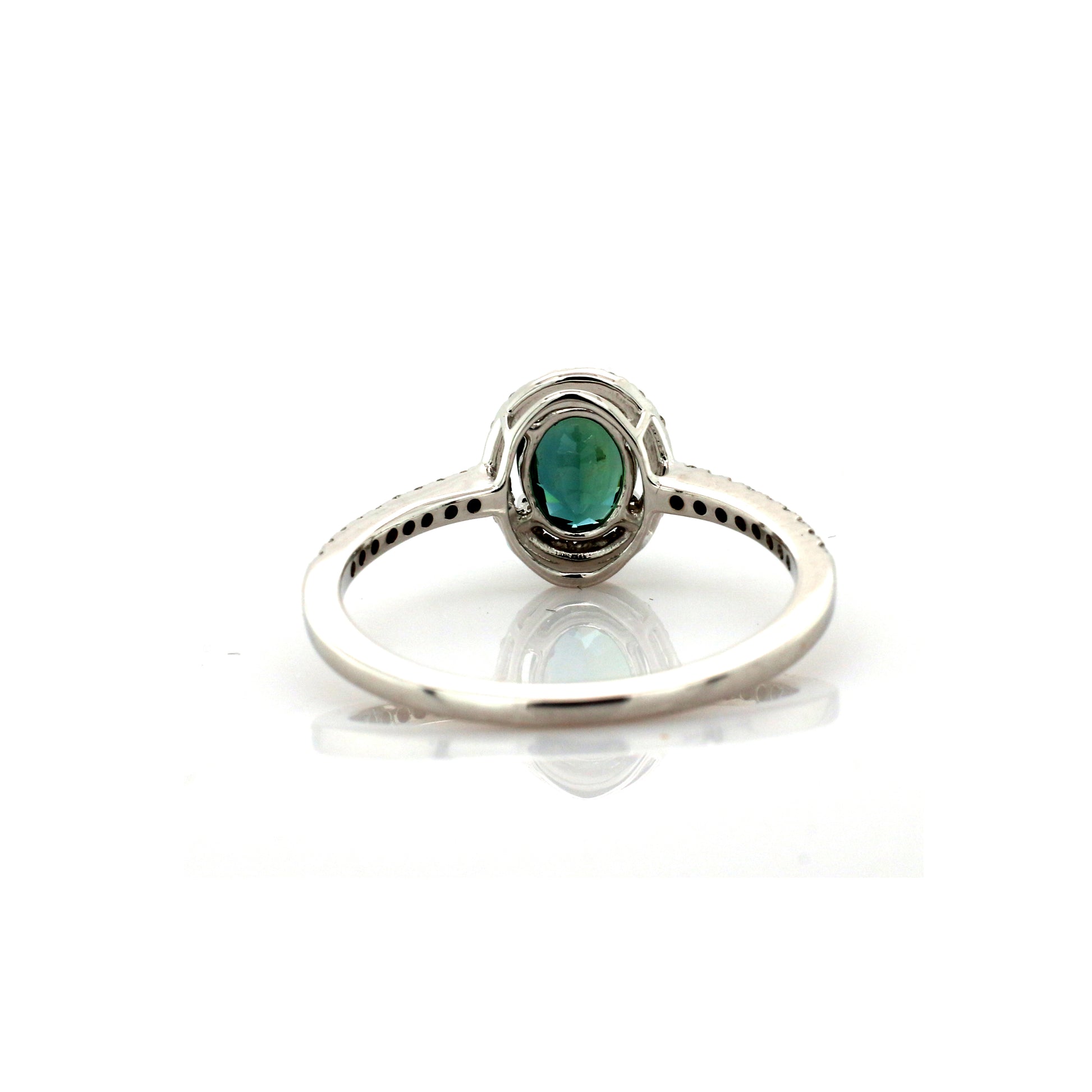 Natural Teal Sapphire & Diamond Ring 18k White Gold 1.77 gm