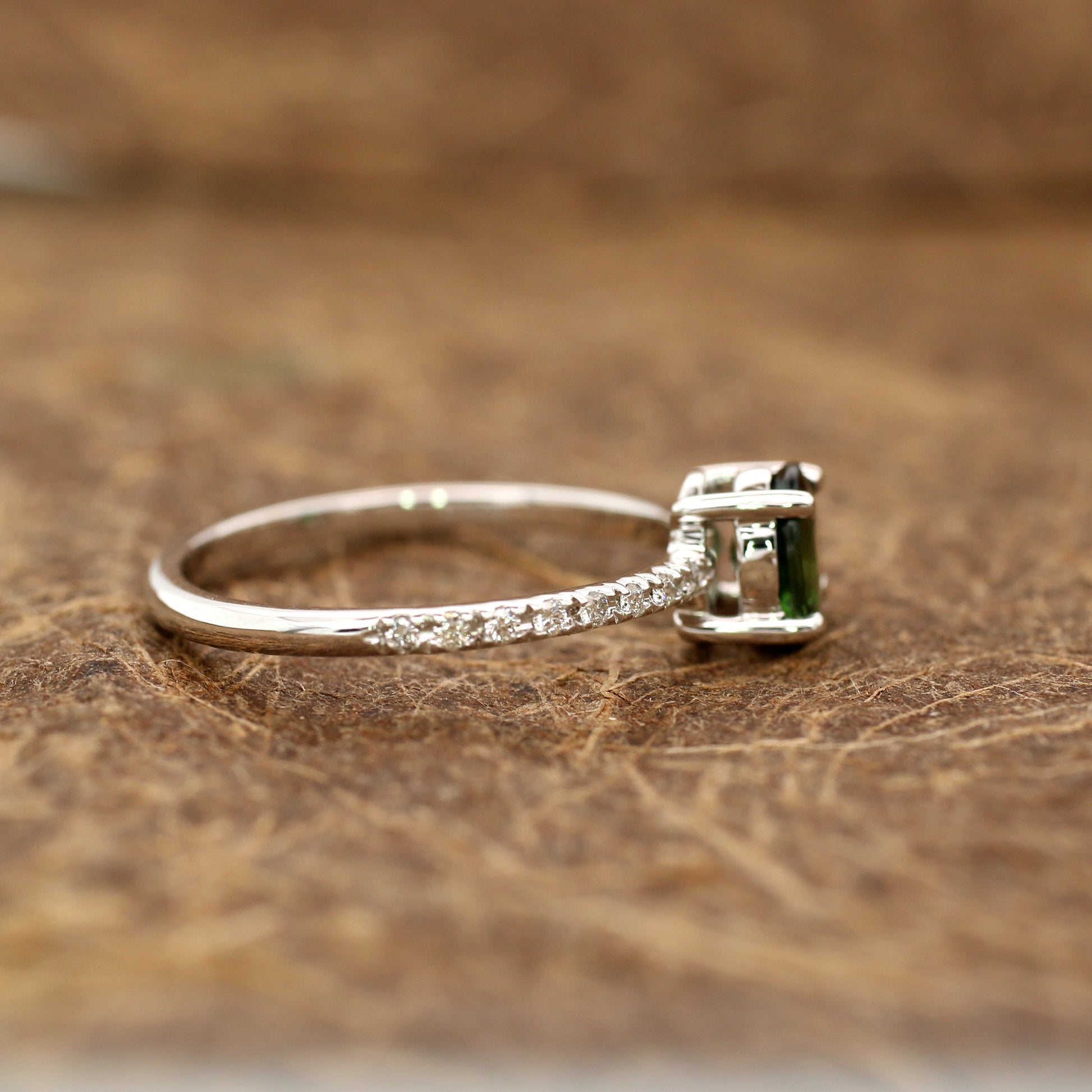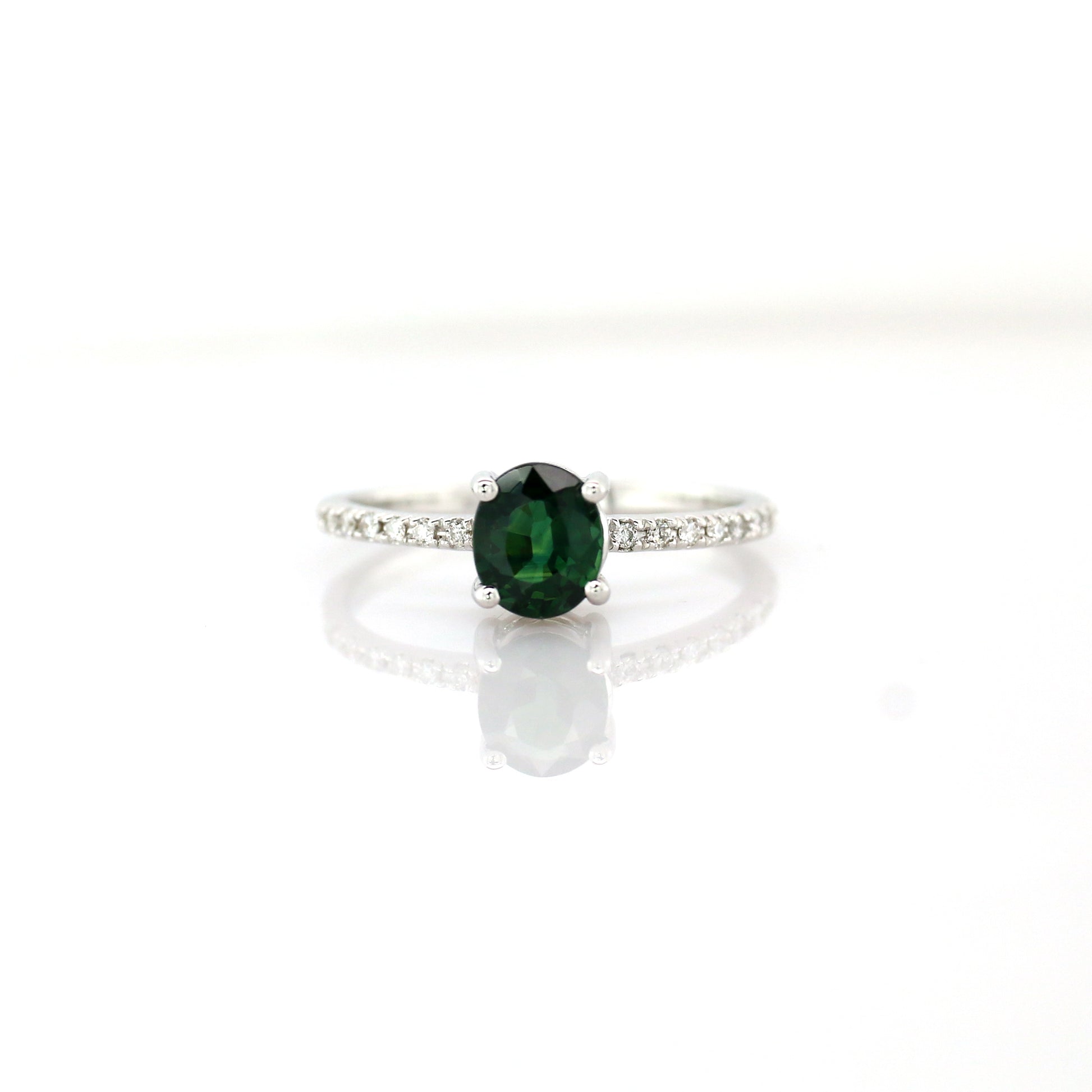 Natural Teal Sapphire & Diamond Ring 18k White Gold 1.87 gm