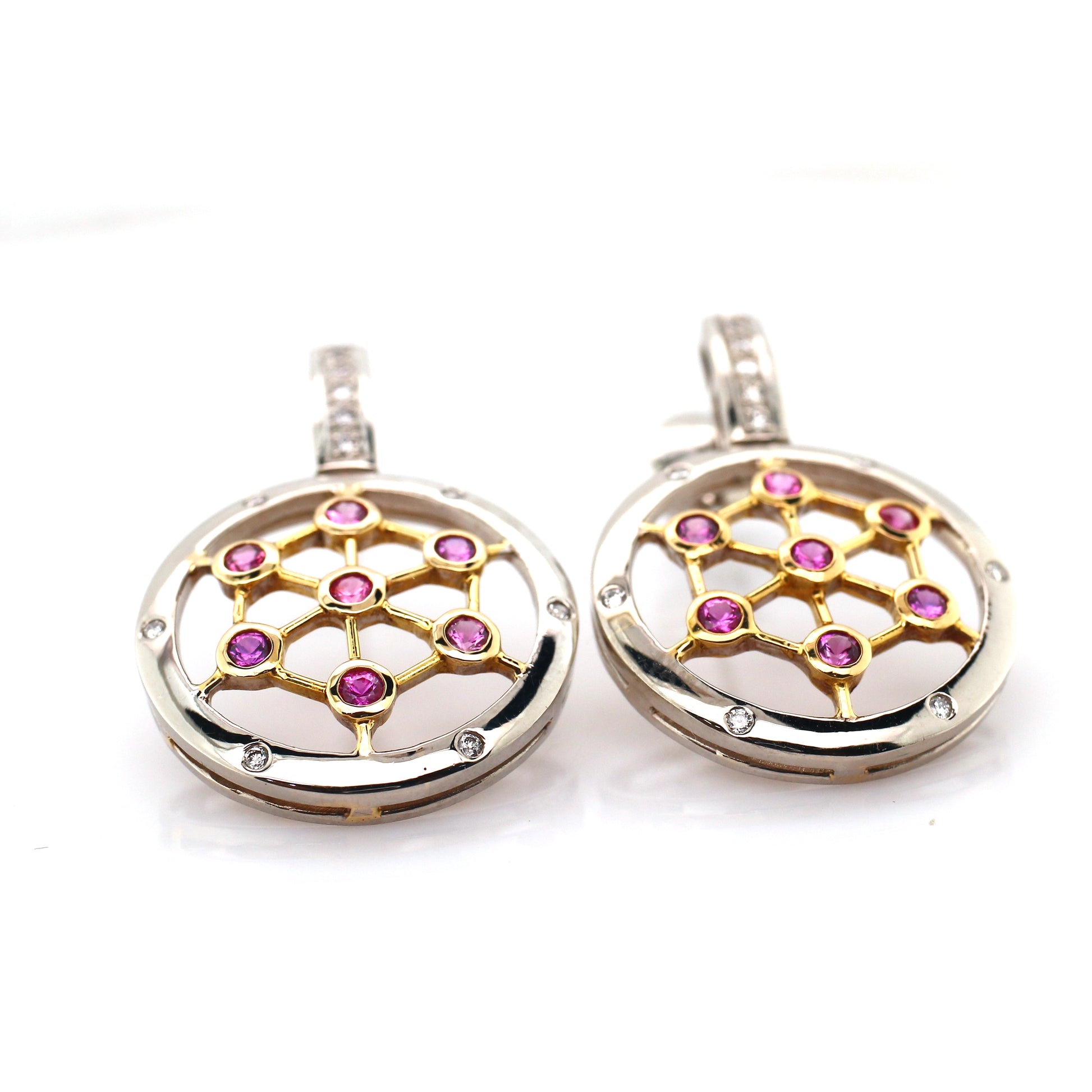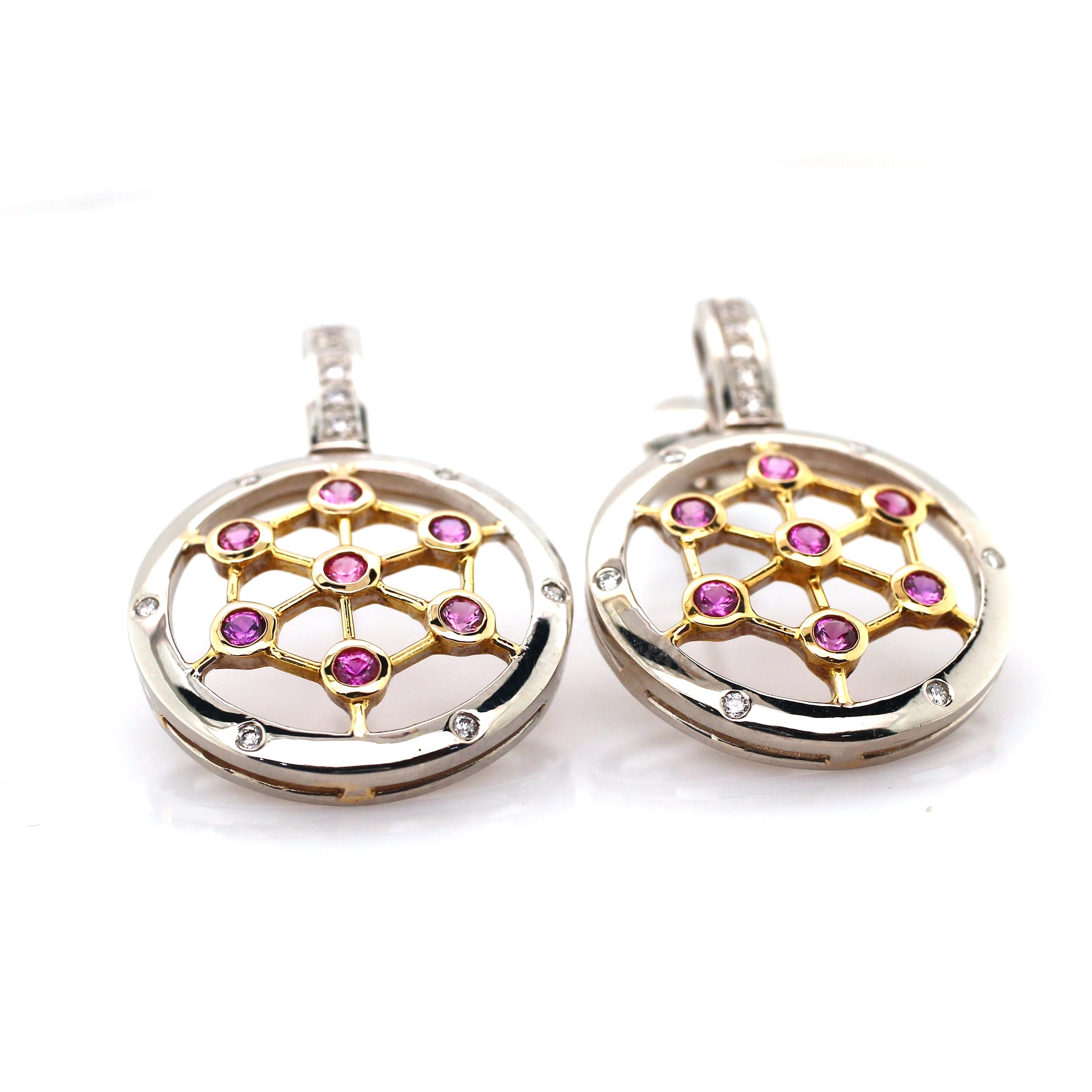 Pink Sapphire & Diamond Earring - 18k White gold & Yellow Gold 12.70 gm