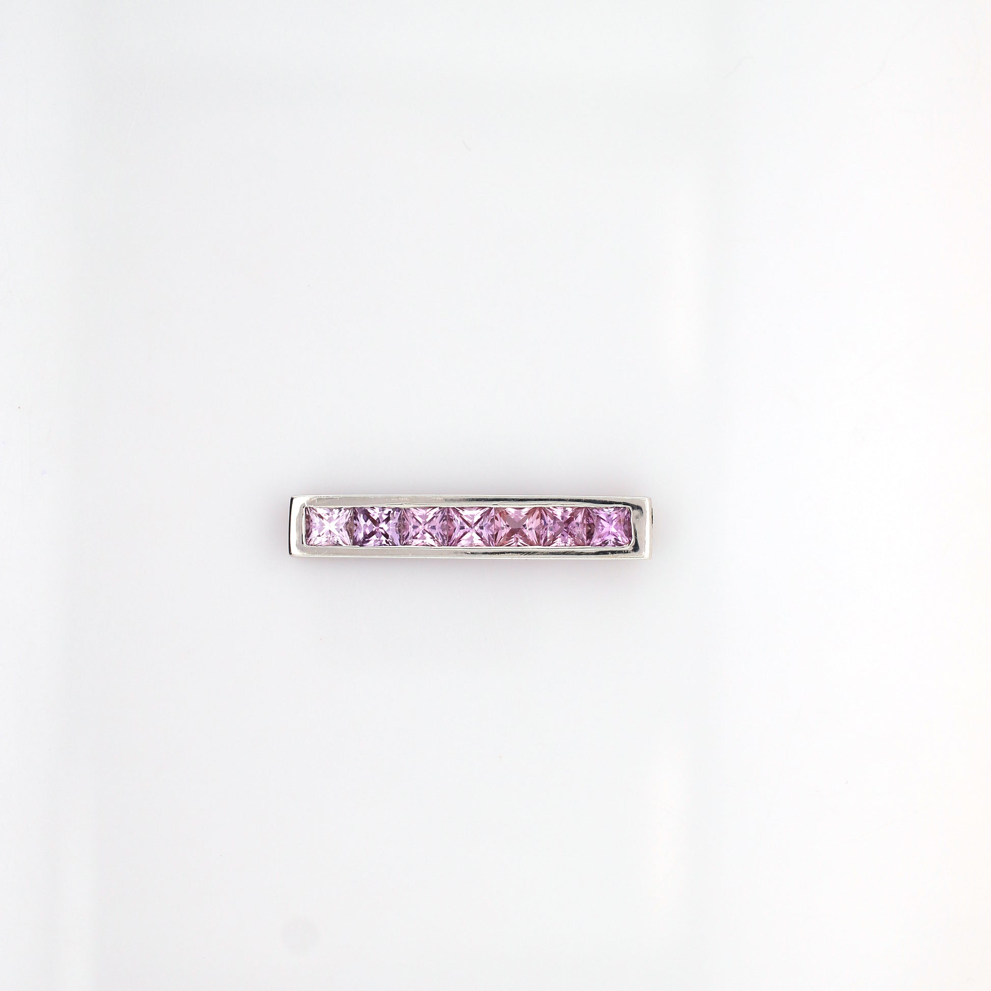 Pink Sapphire 2.35 carat, Princess cut, Dark to light color shading.