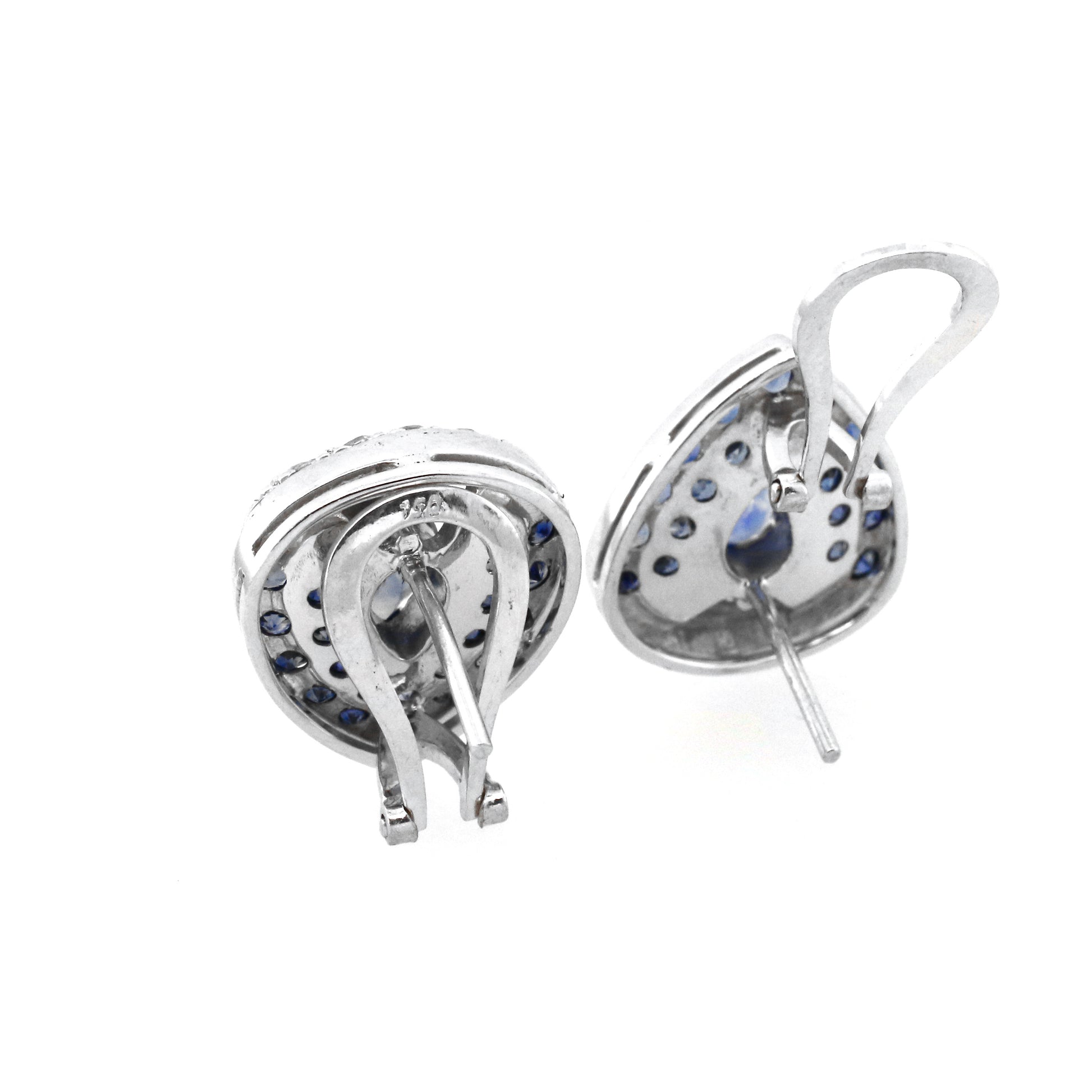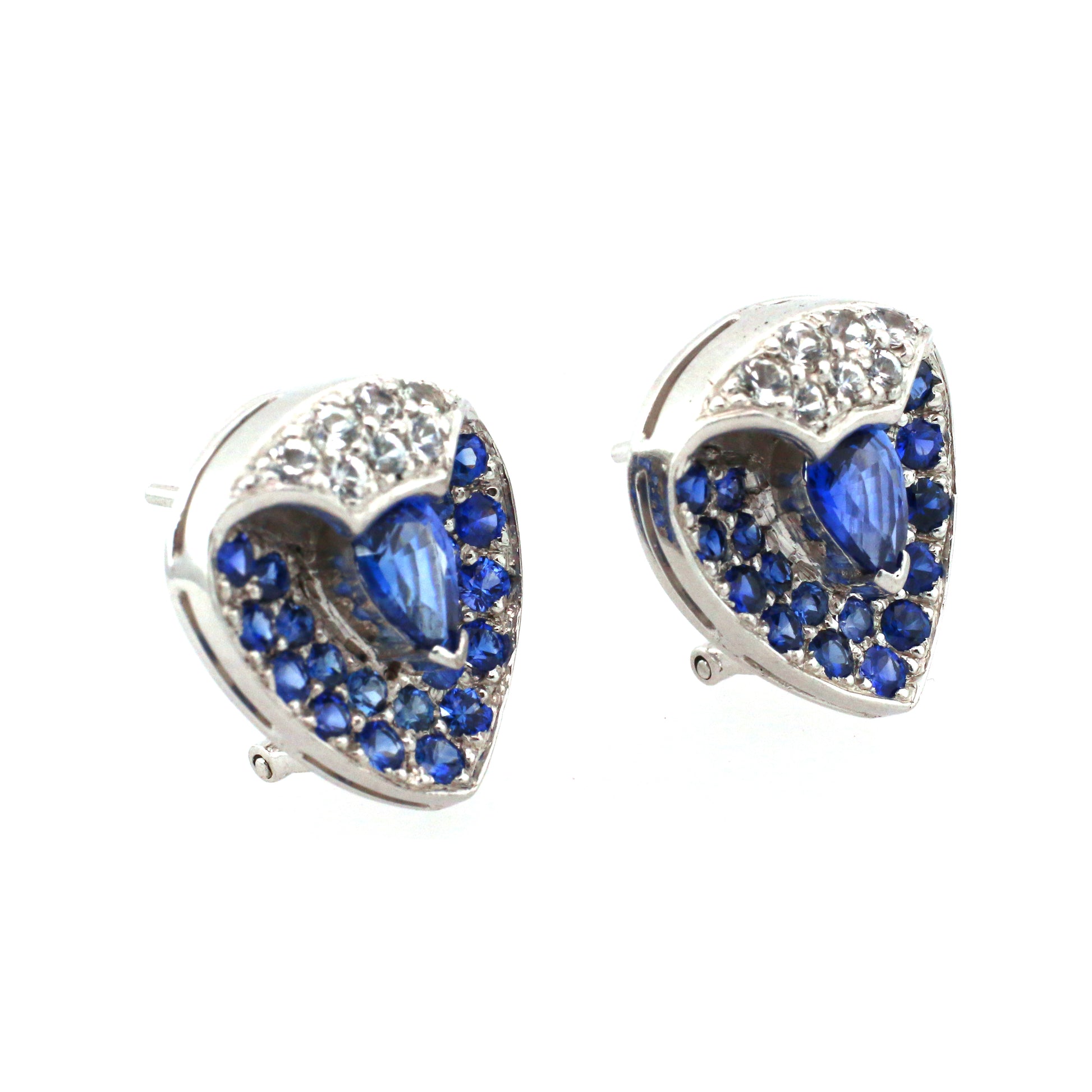 Stunning Pair of Earring in 18K White Gold Combined with exclusive Royal Blue Sapphire Highlighted By White Sapphire