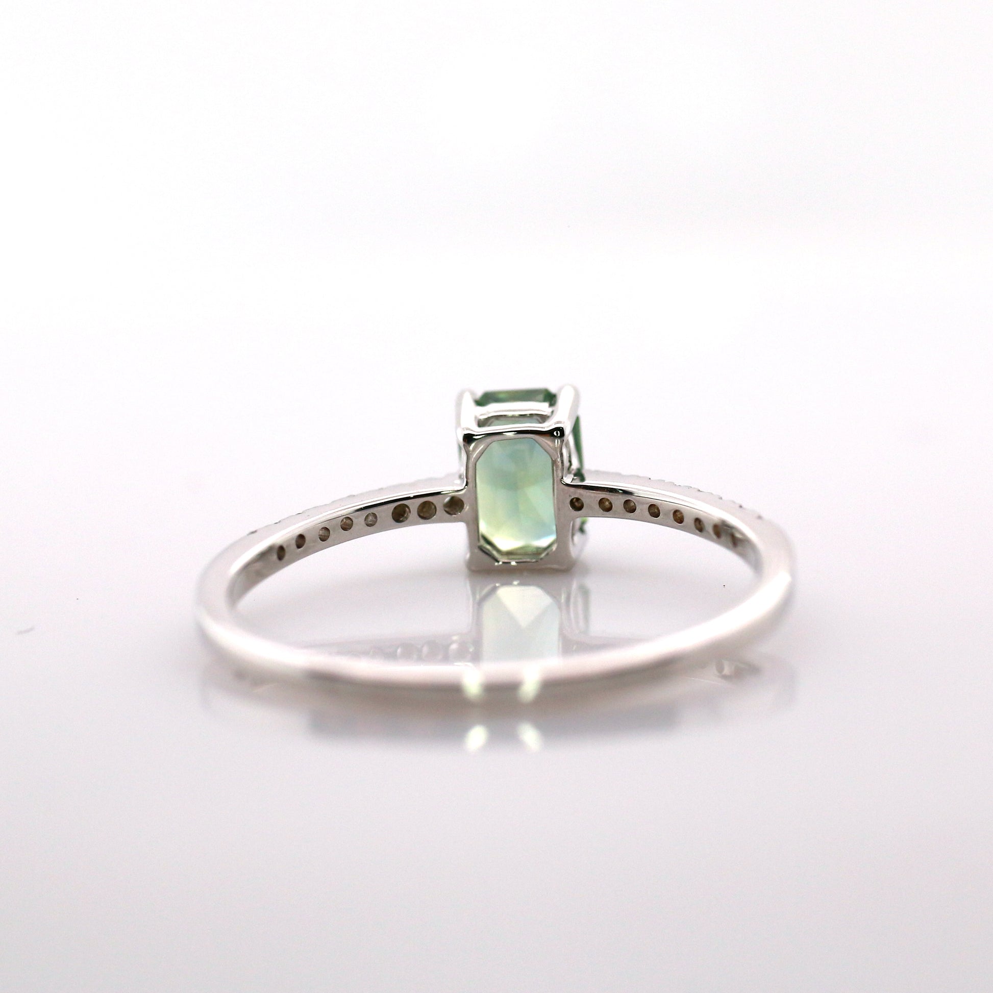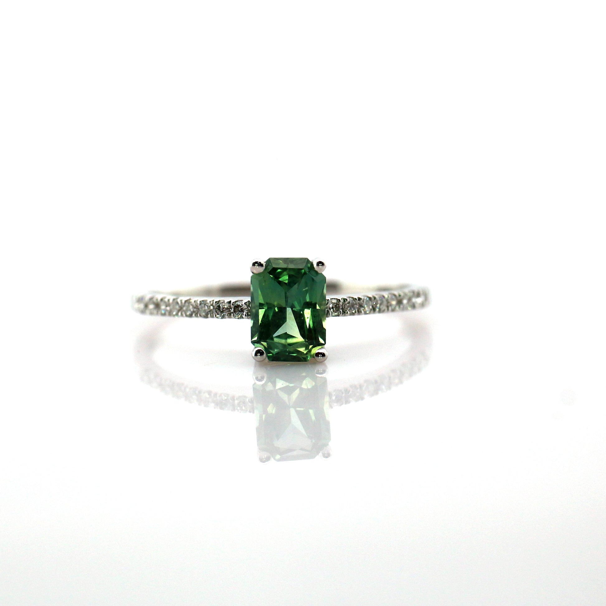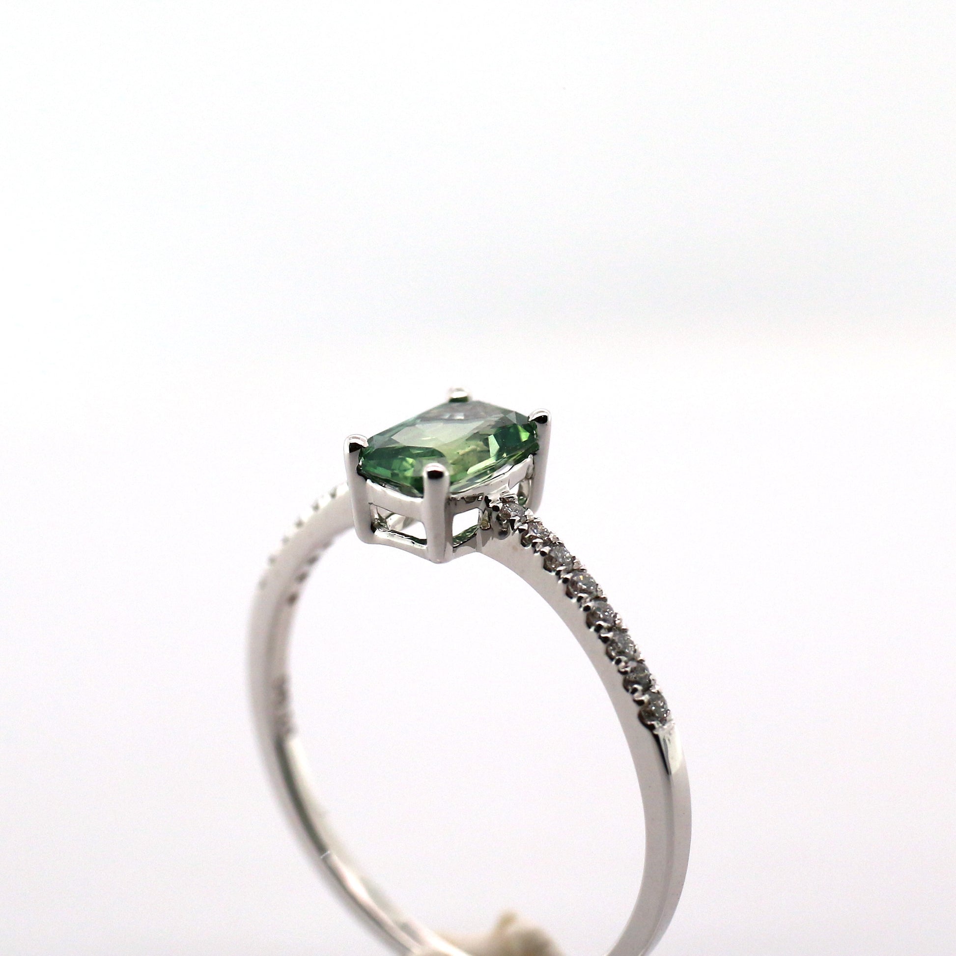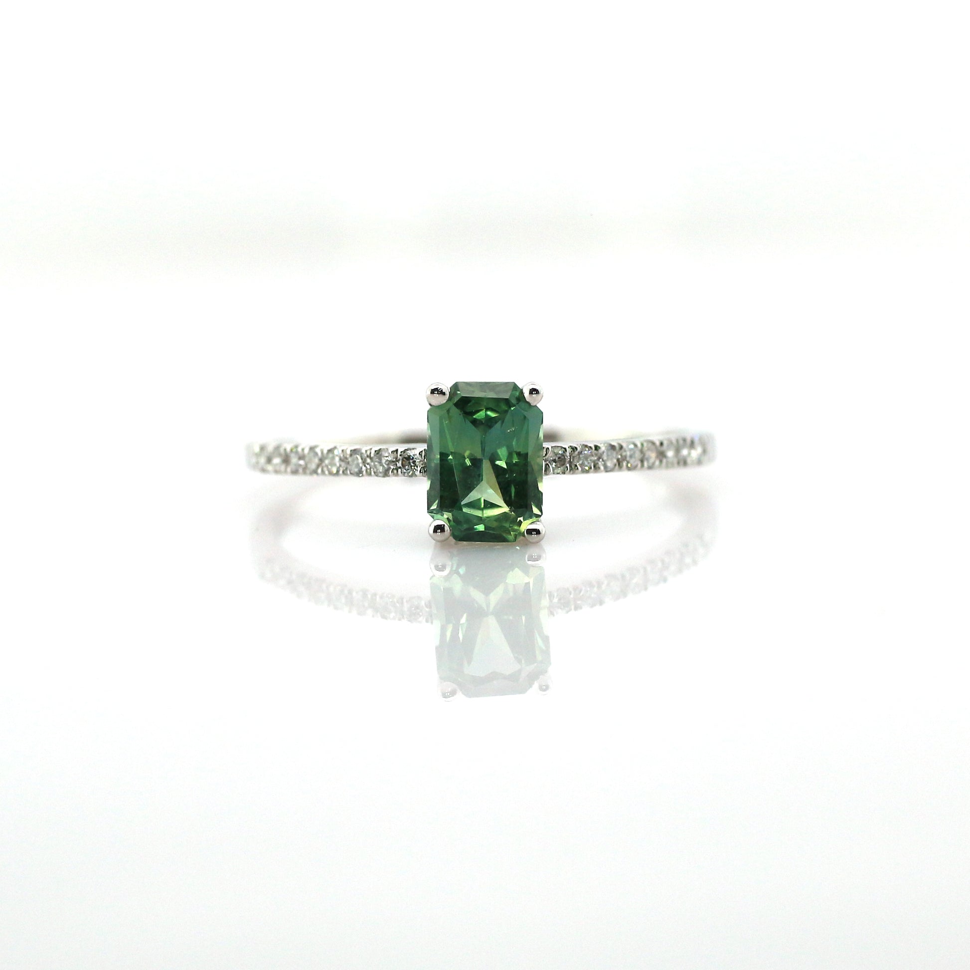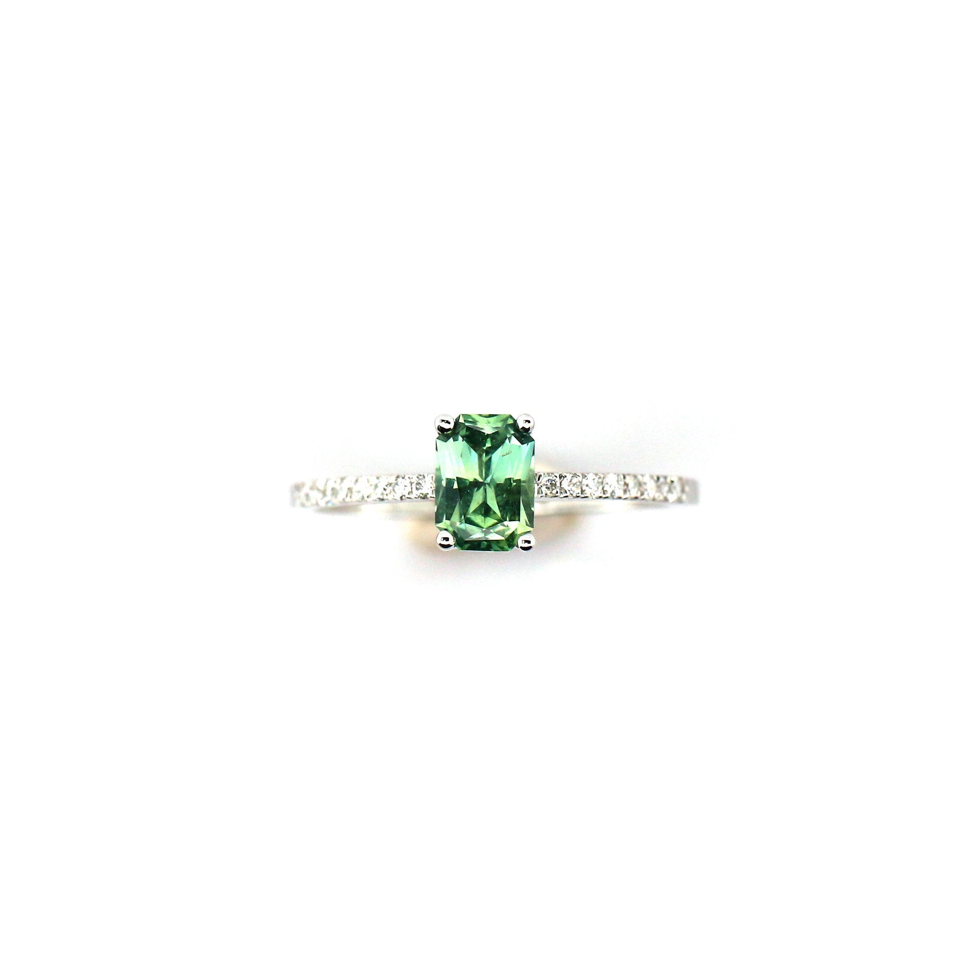 Teal Sapphire & Diamond Ring 18k White Gold 1.19g