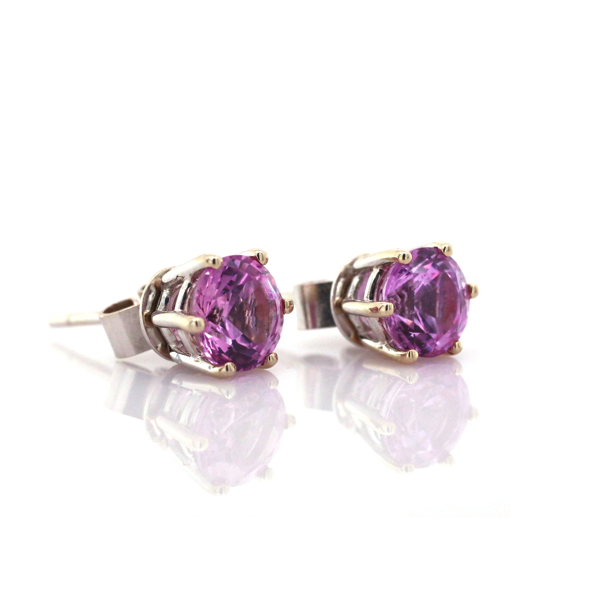 This Sparkling created Pink Sapphire Earring is Simple but Stunning